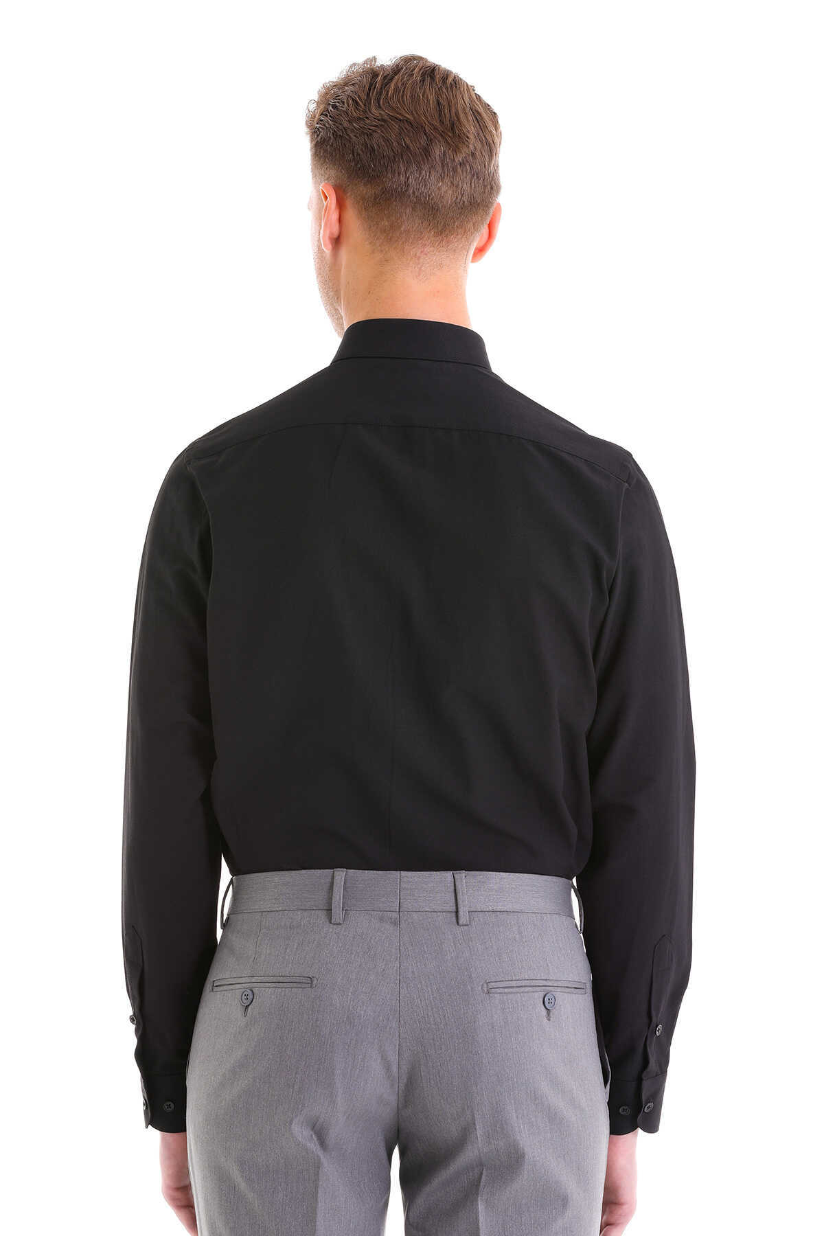 Siyah Slim Fit Pamuklu Slim Yaka Uzun Kollu Klasik Gömlek - 6