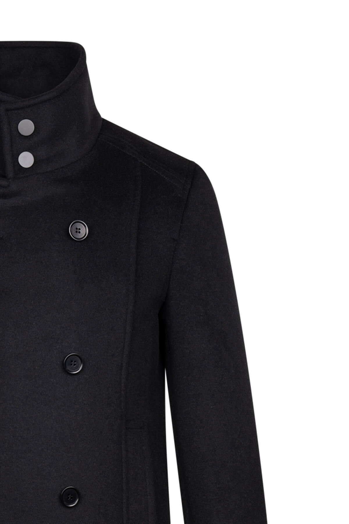 Siyah Slim Fit Kruvaze Yünlü Kaşe Kaban