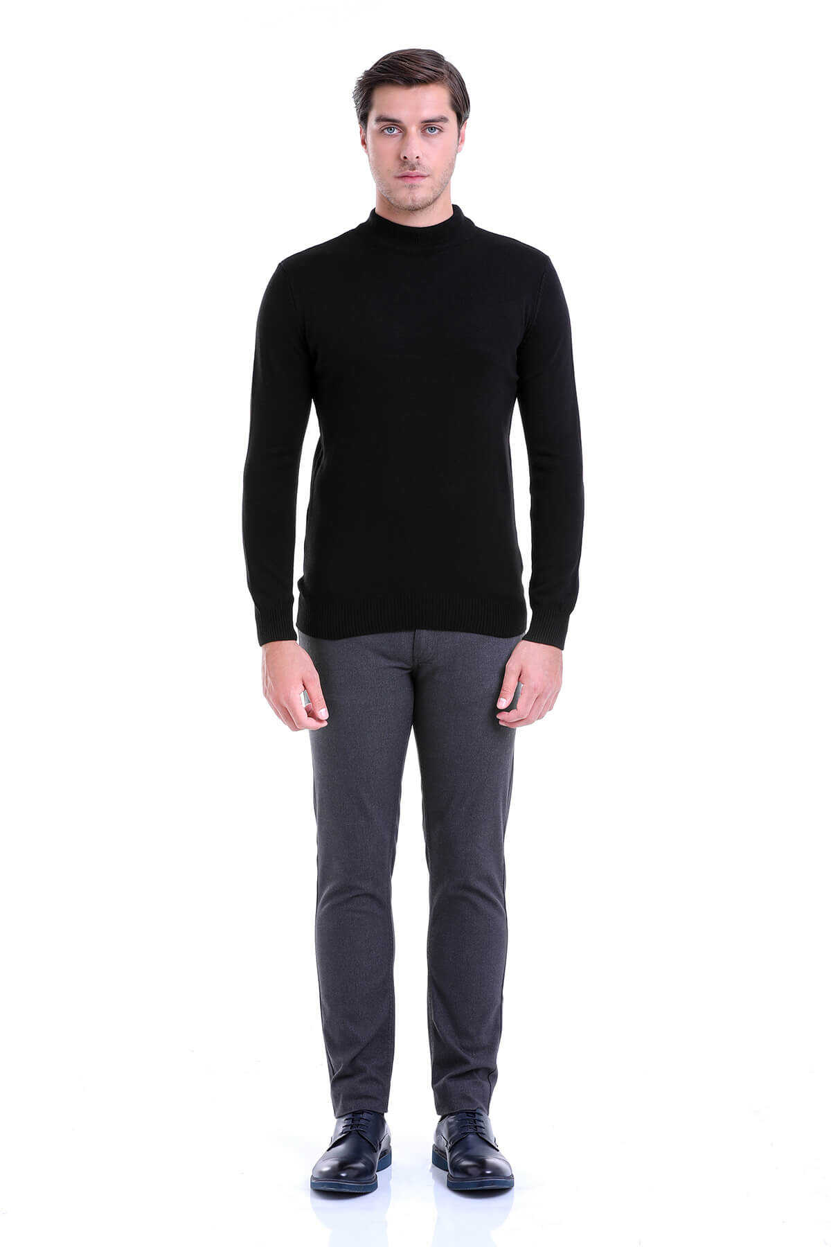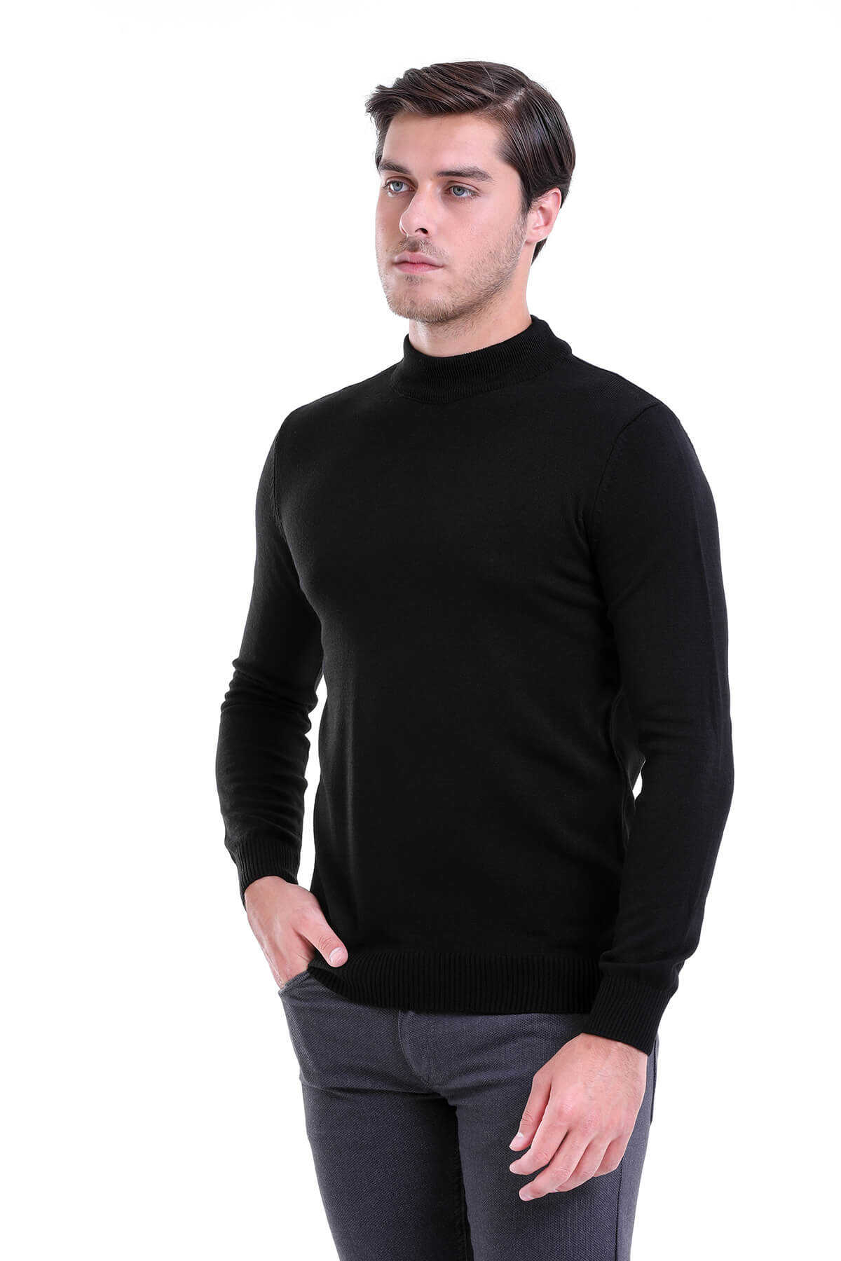 Siyah Regular Fit Düz Yarım Balıkçı Yaka Triko Kazak
