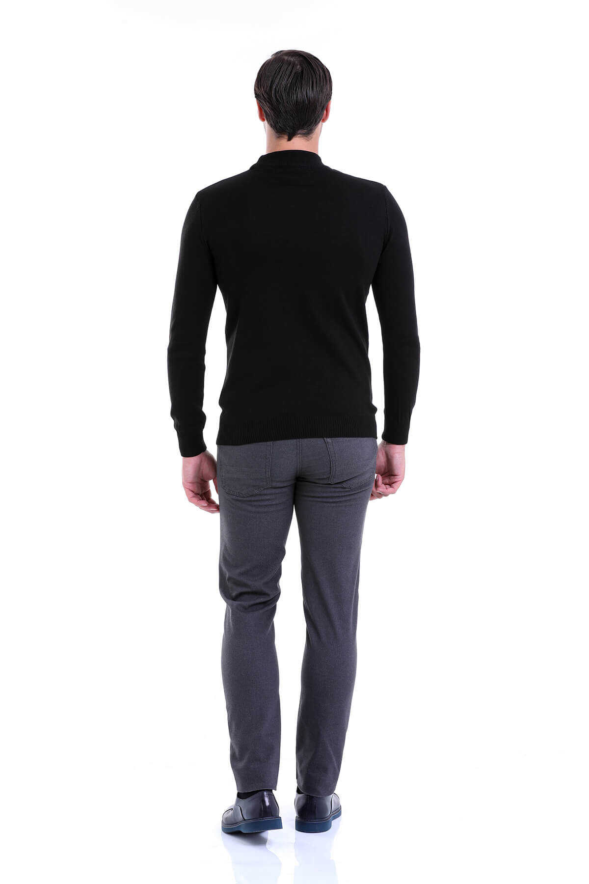 Siyah Regular Fit Düz Yarım Balıkçı Yaka Triko Kazak - 5