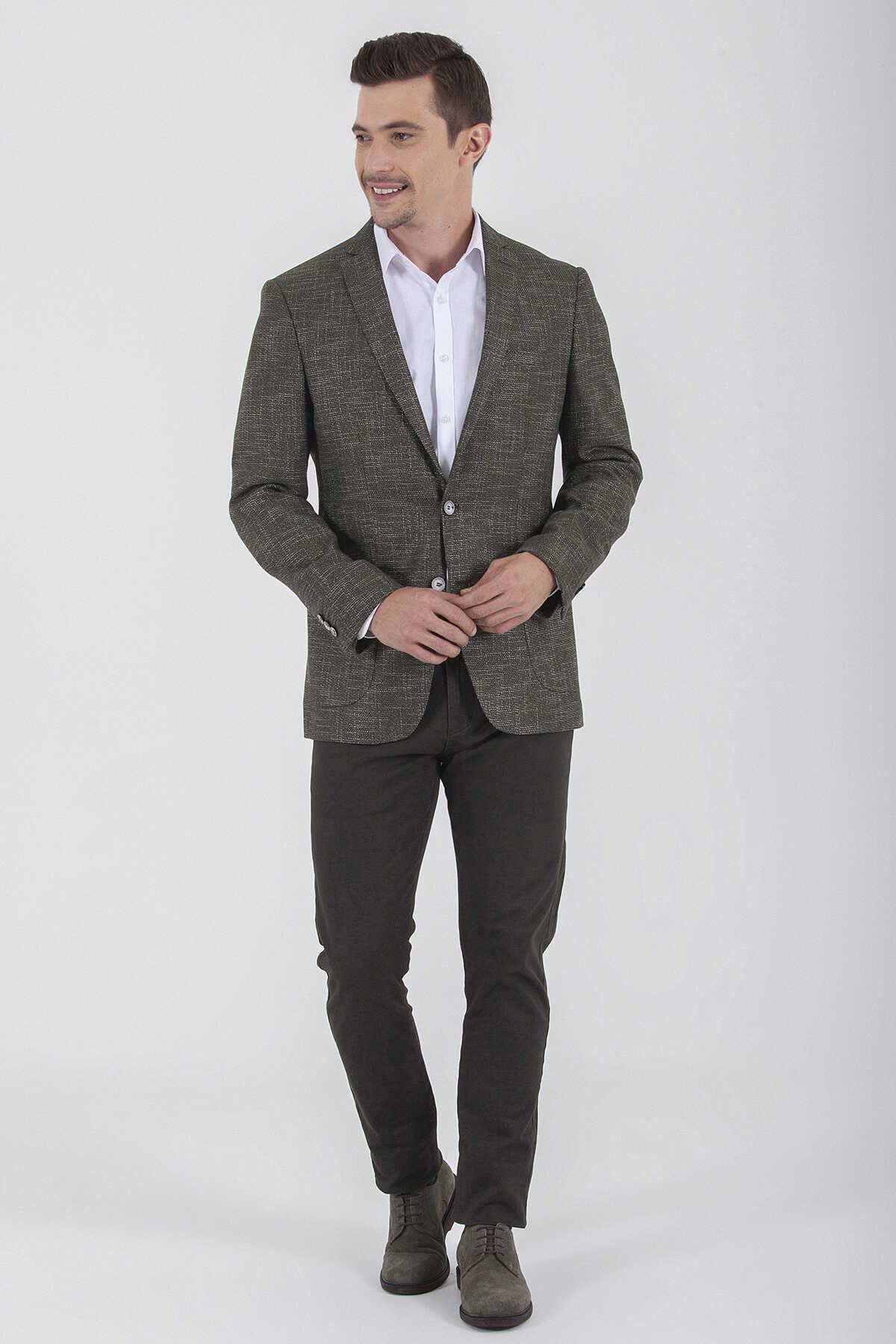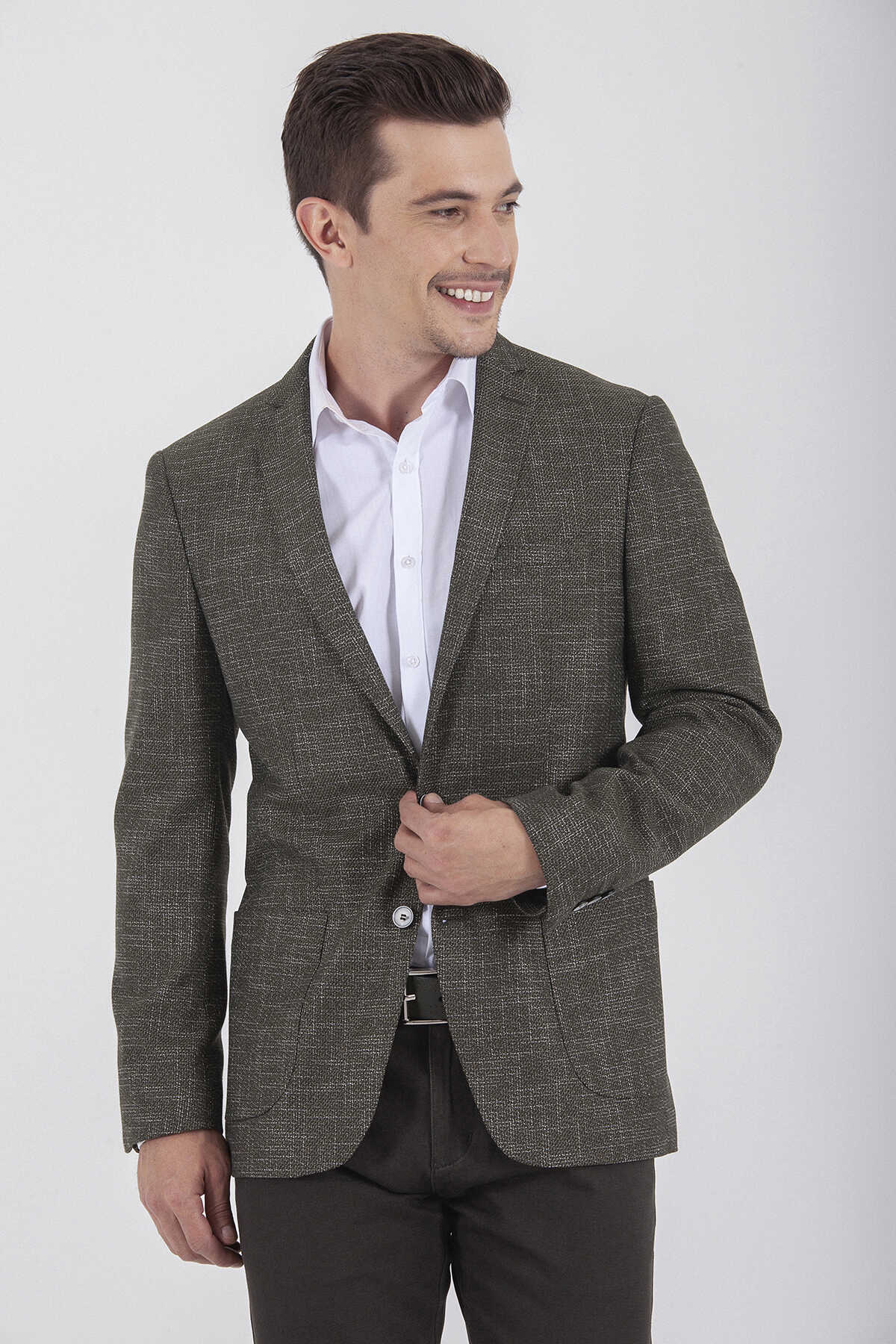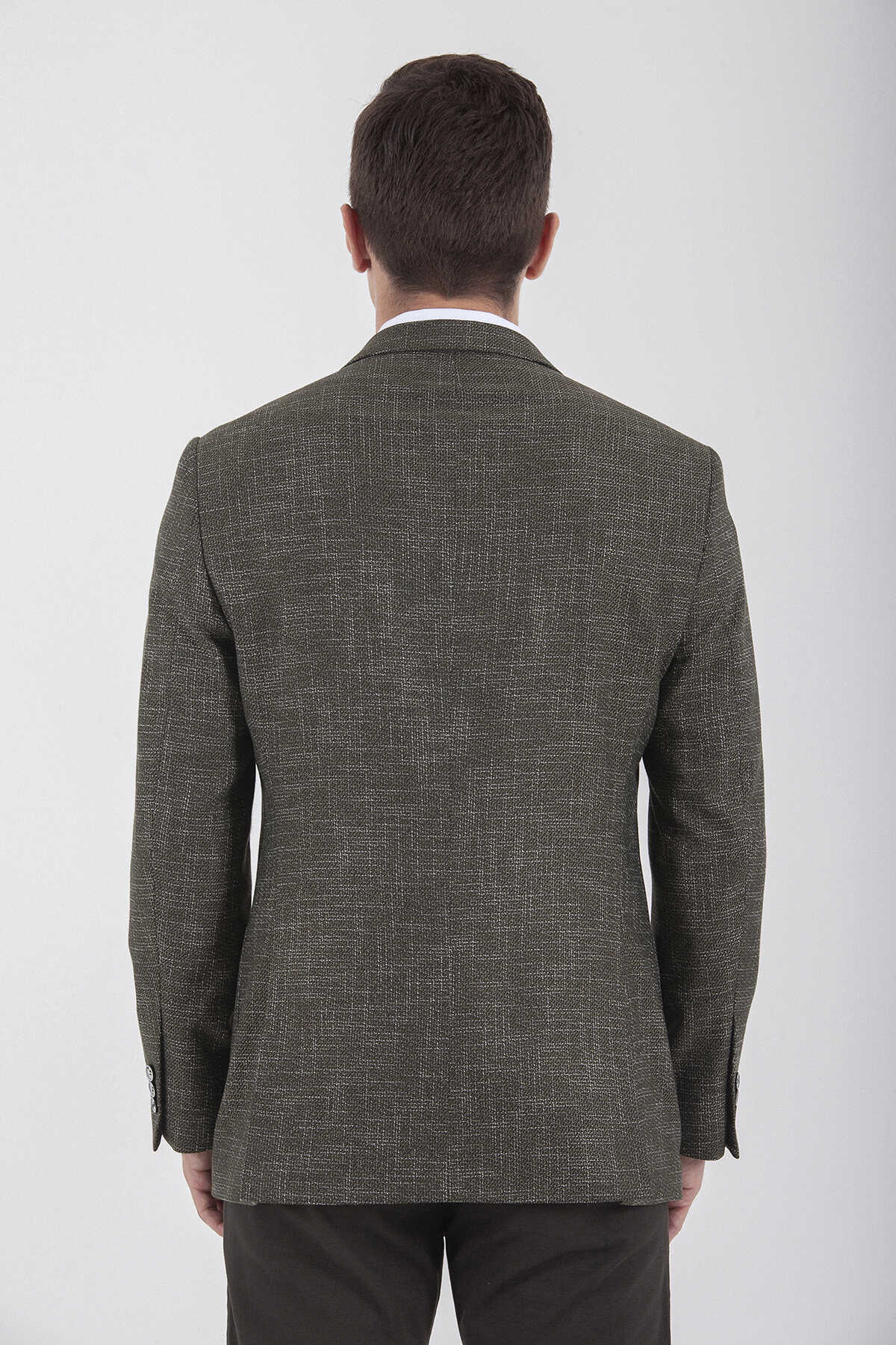 Slim Fit Desenli Haki Ceket