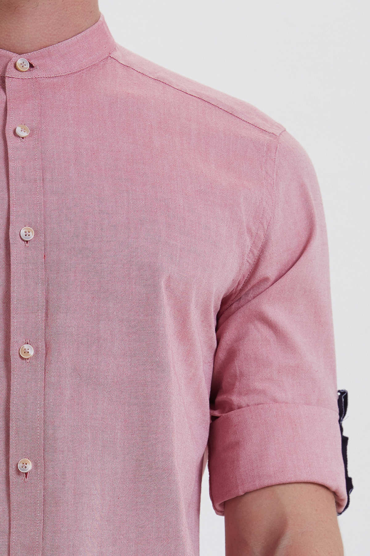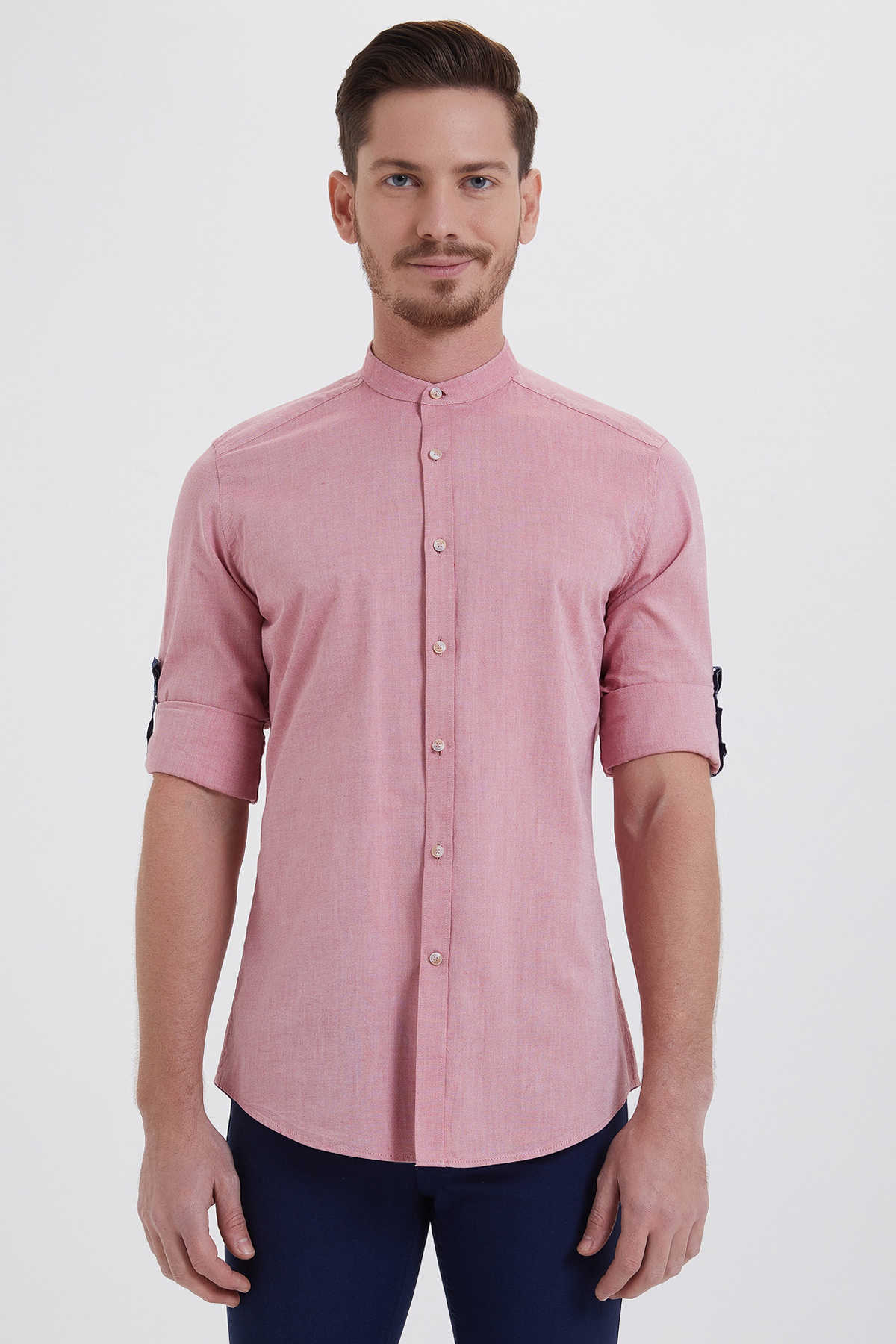 Kırmızı Slim Fit 100% Pamuk Uzun Kol Spor Gömlek