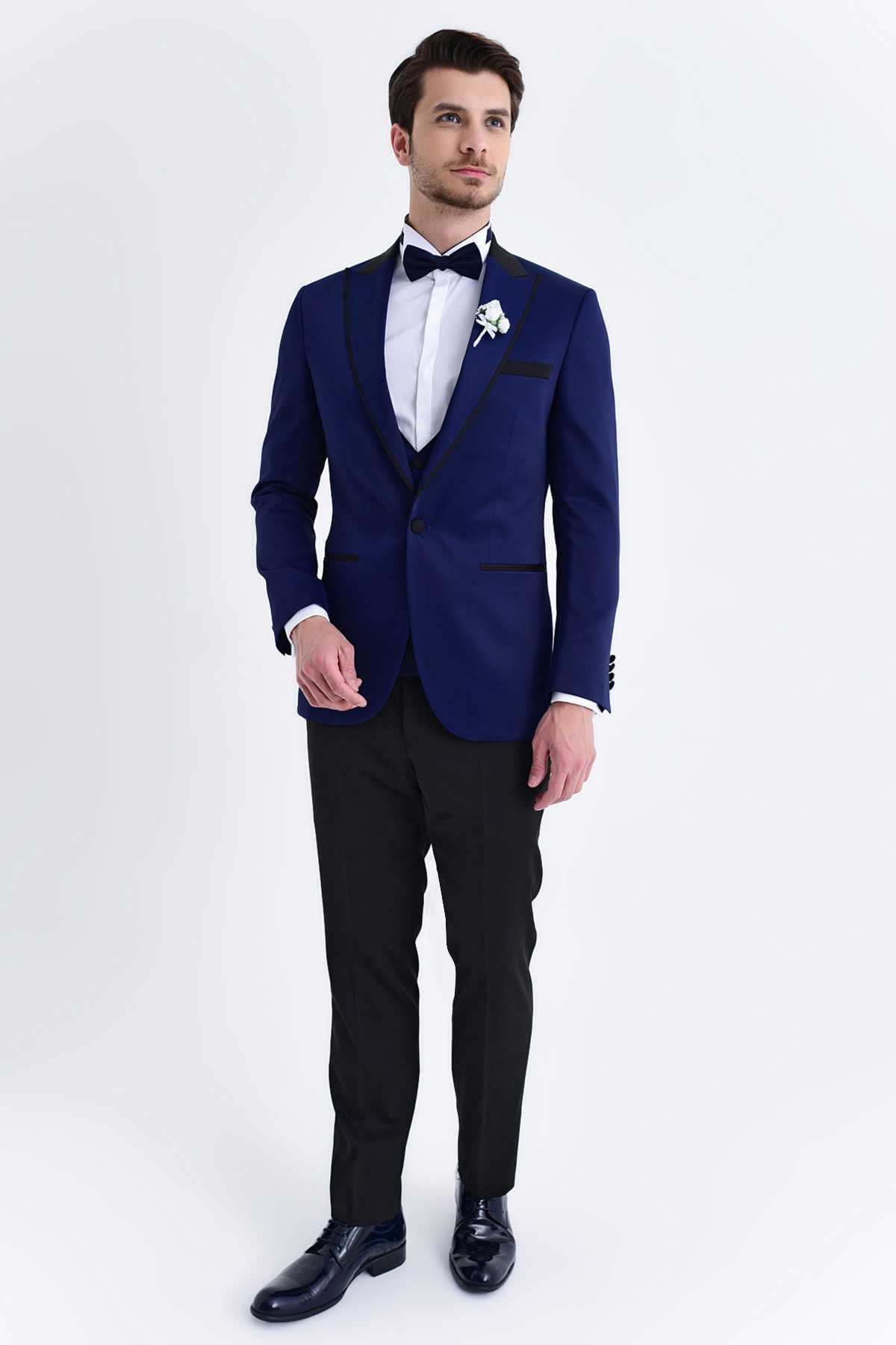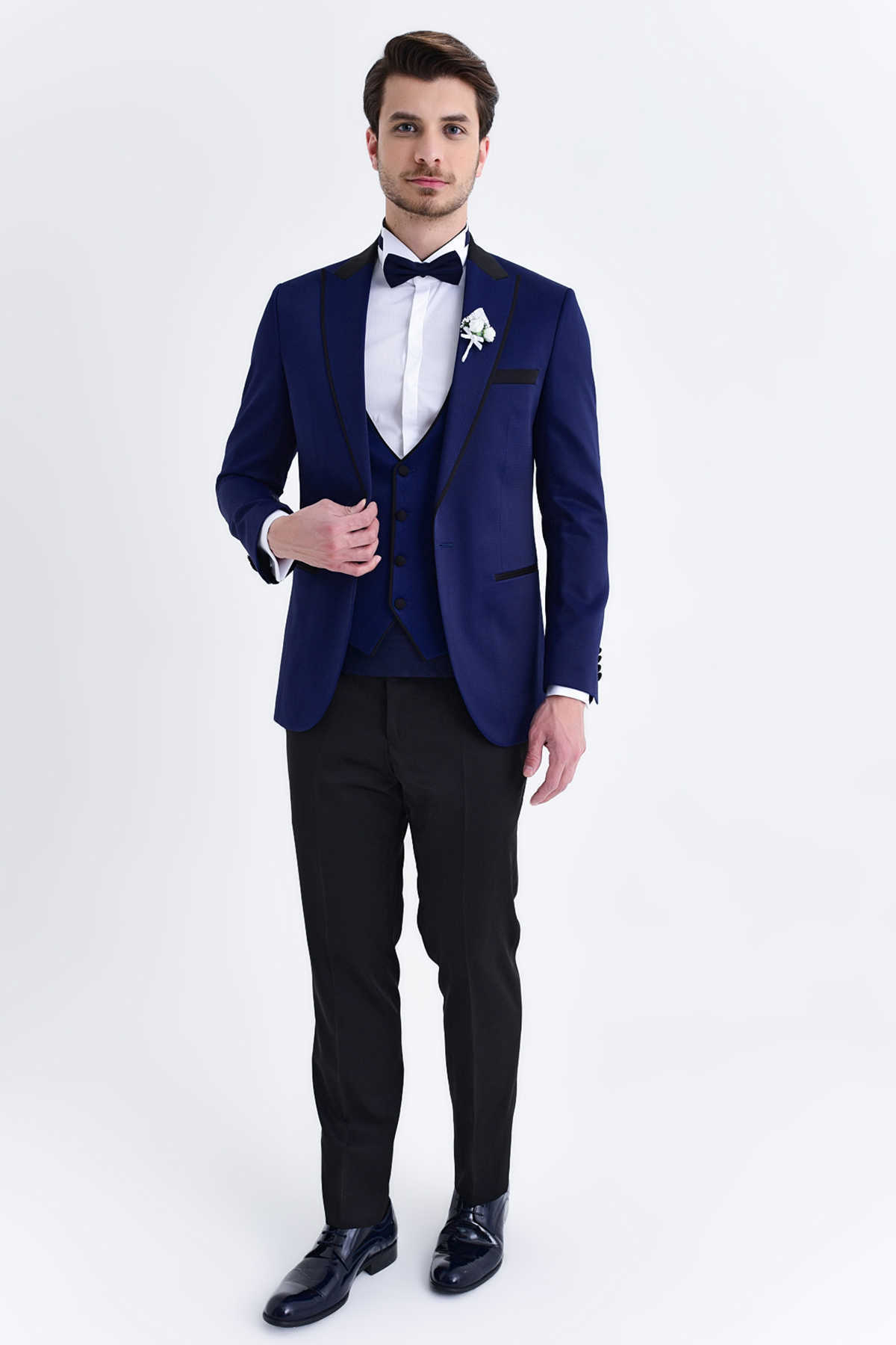 Lacivert Slim Fit Sivri Yaka Yelekli Damatlık