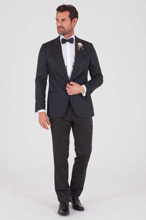 Siyah Saten Sivri Yaka