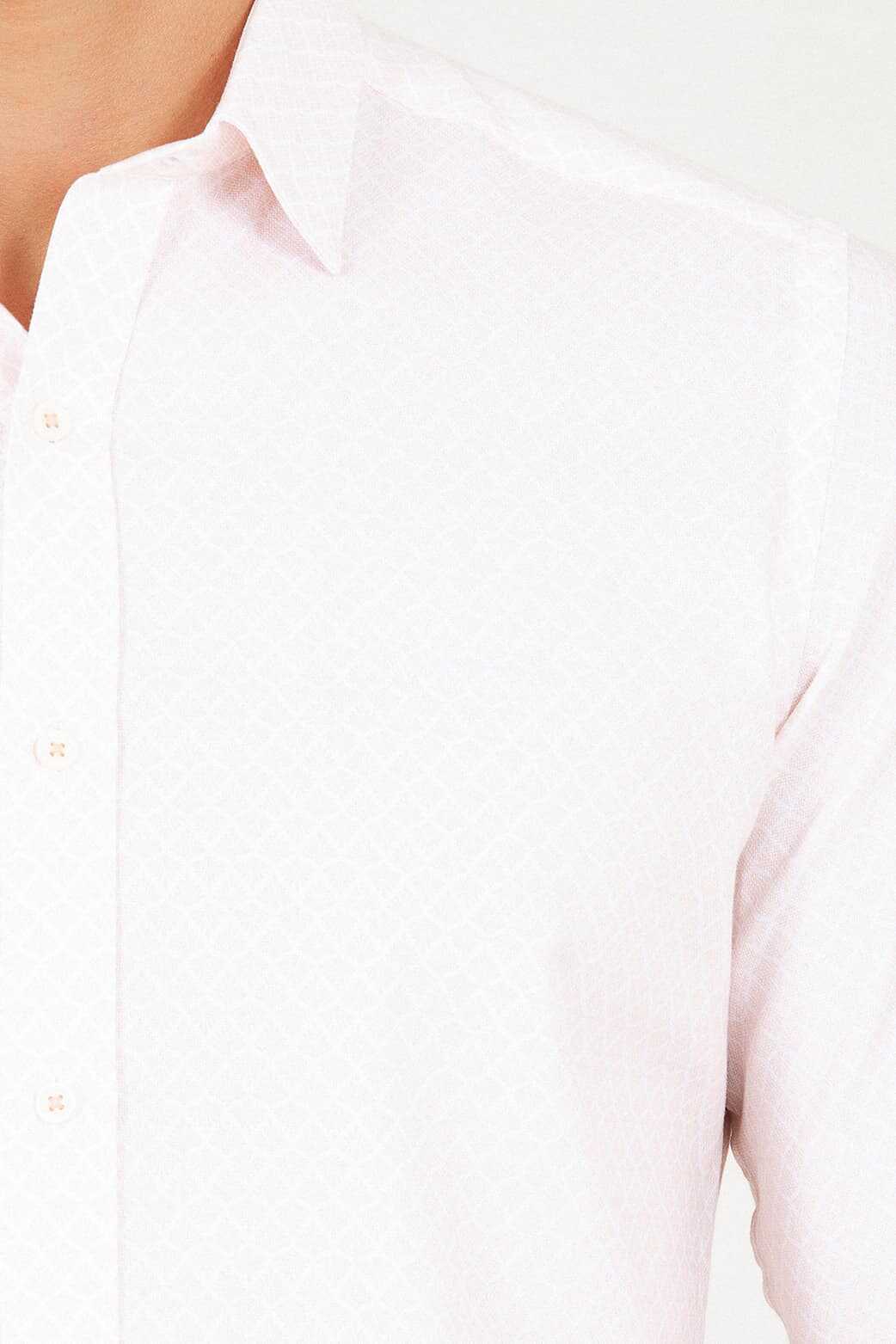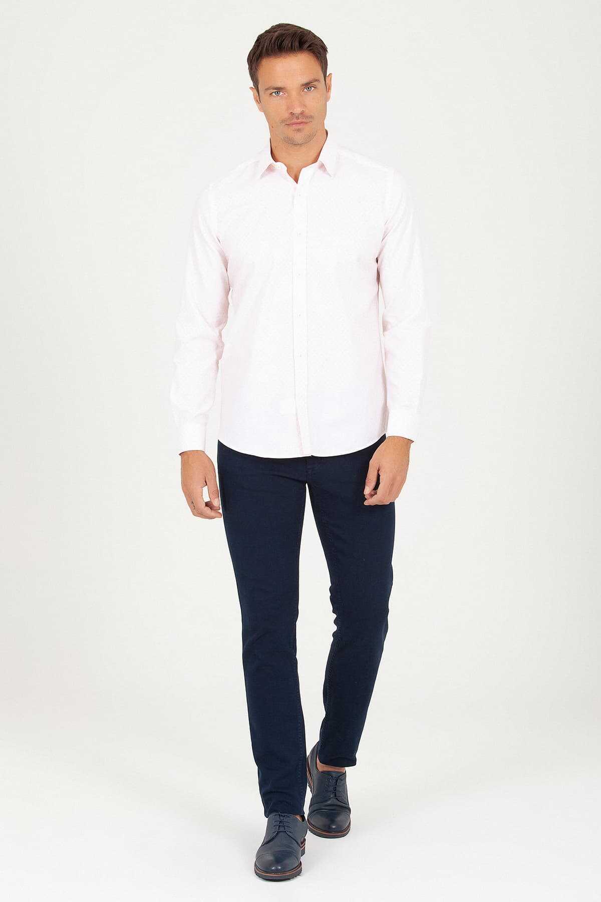 Pembe Slim Fit Baskılı 100% Pamuk Uzun Kol Spor Gömlek