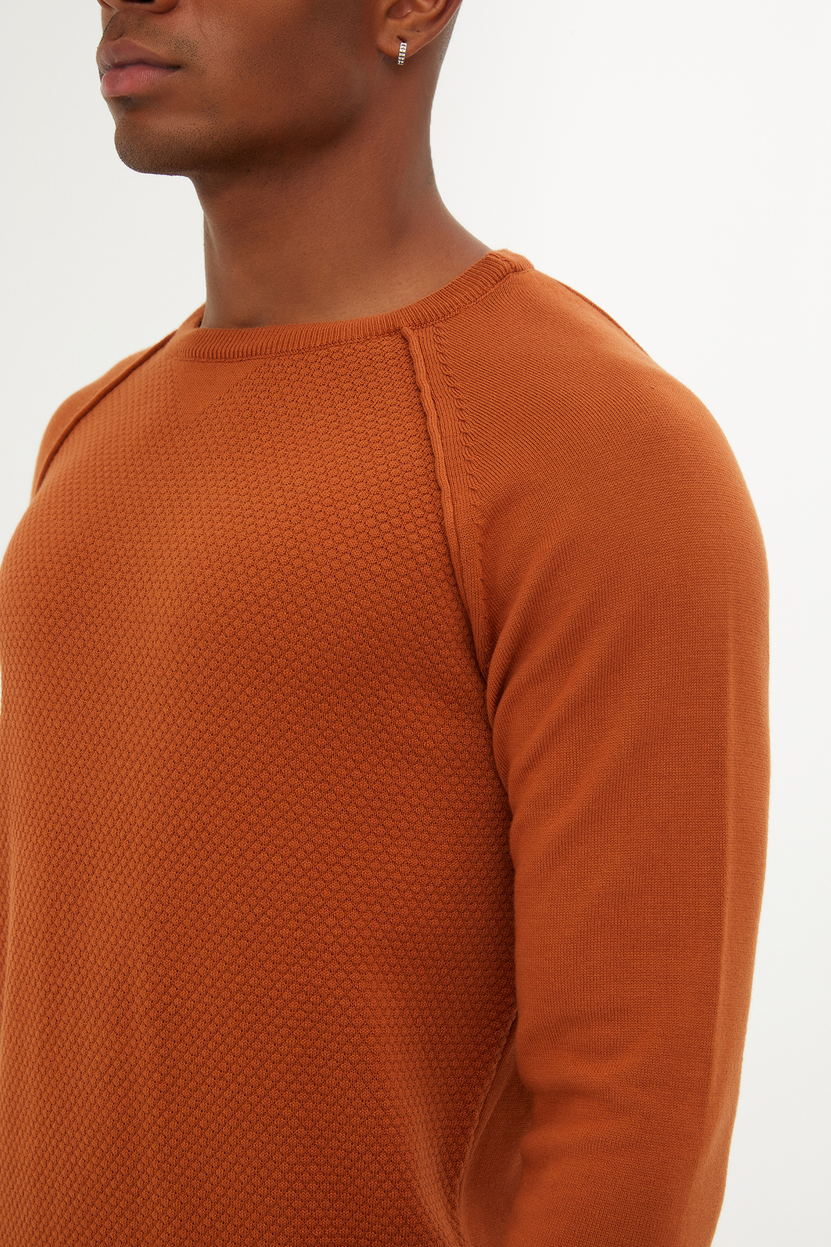 Kahverengi Slim Fit Desenli Pamuklu Bisiklet Yaka Triko Kazak