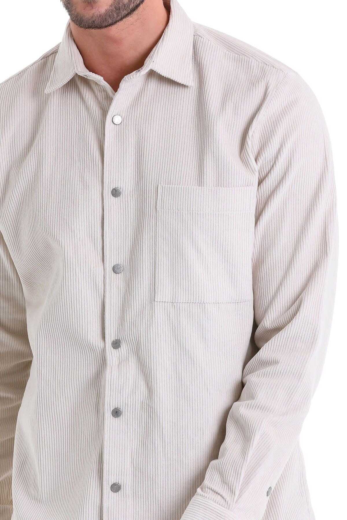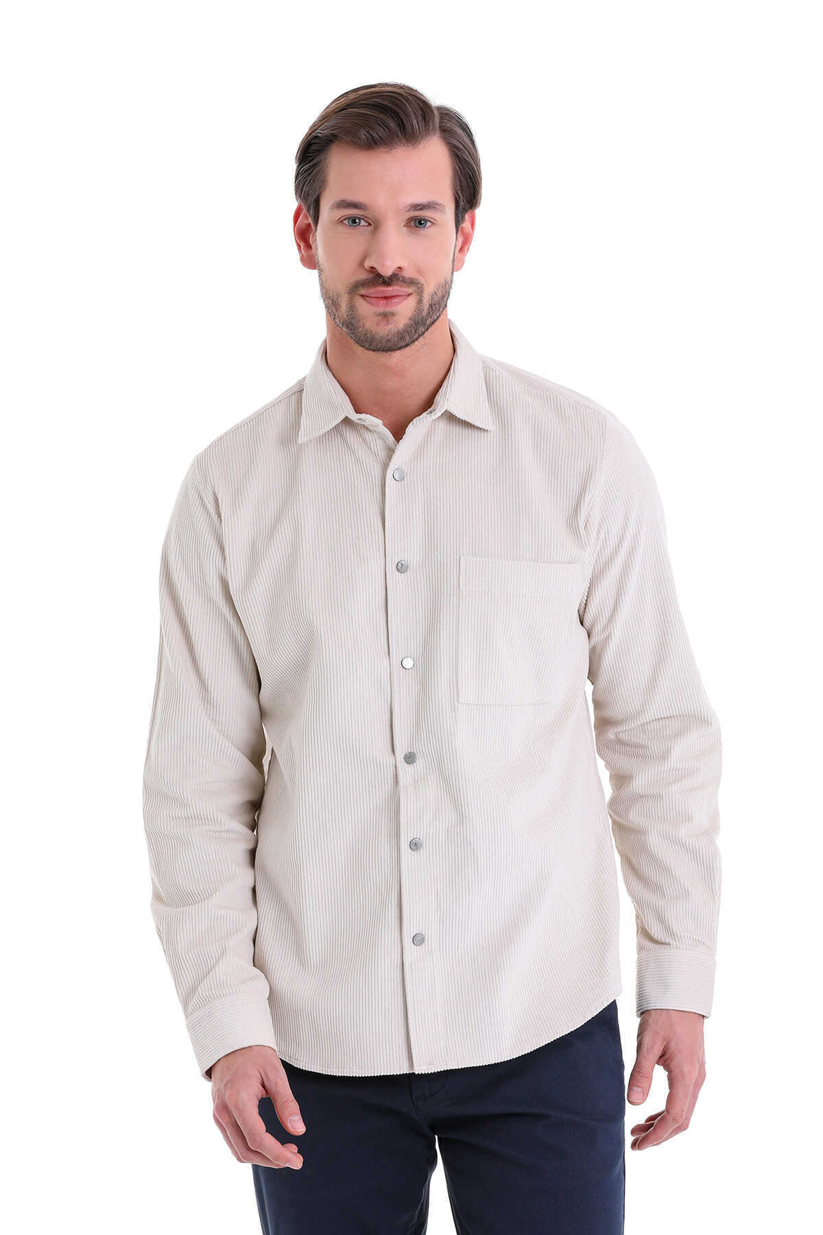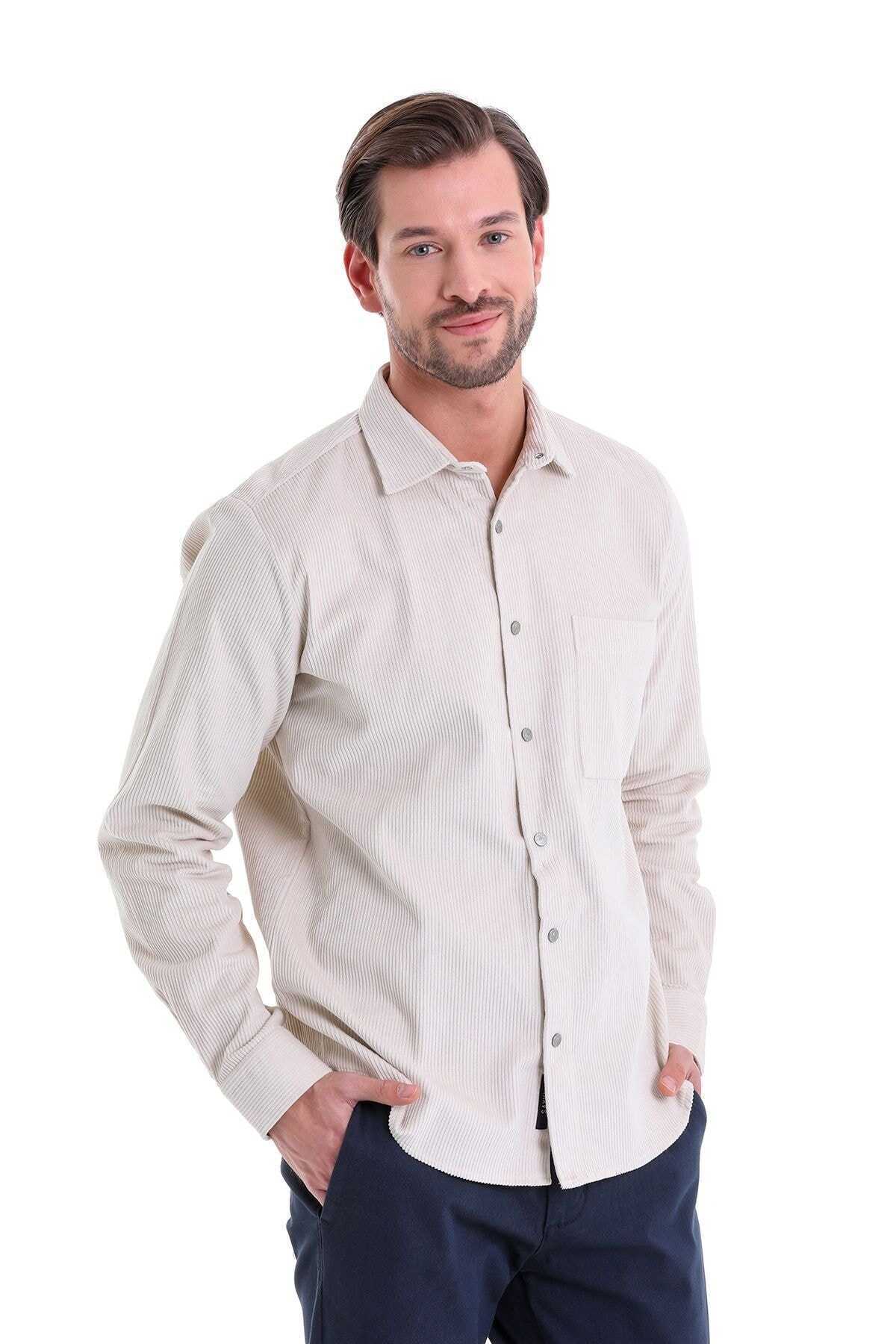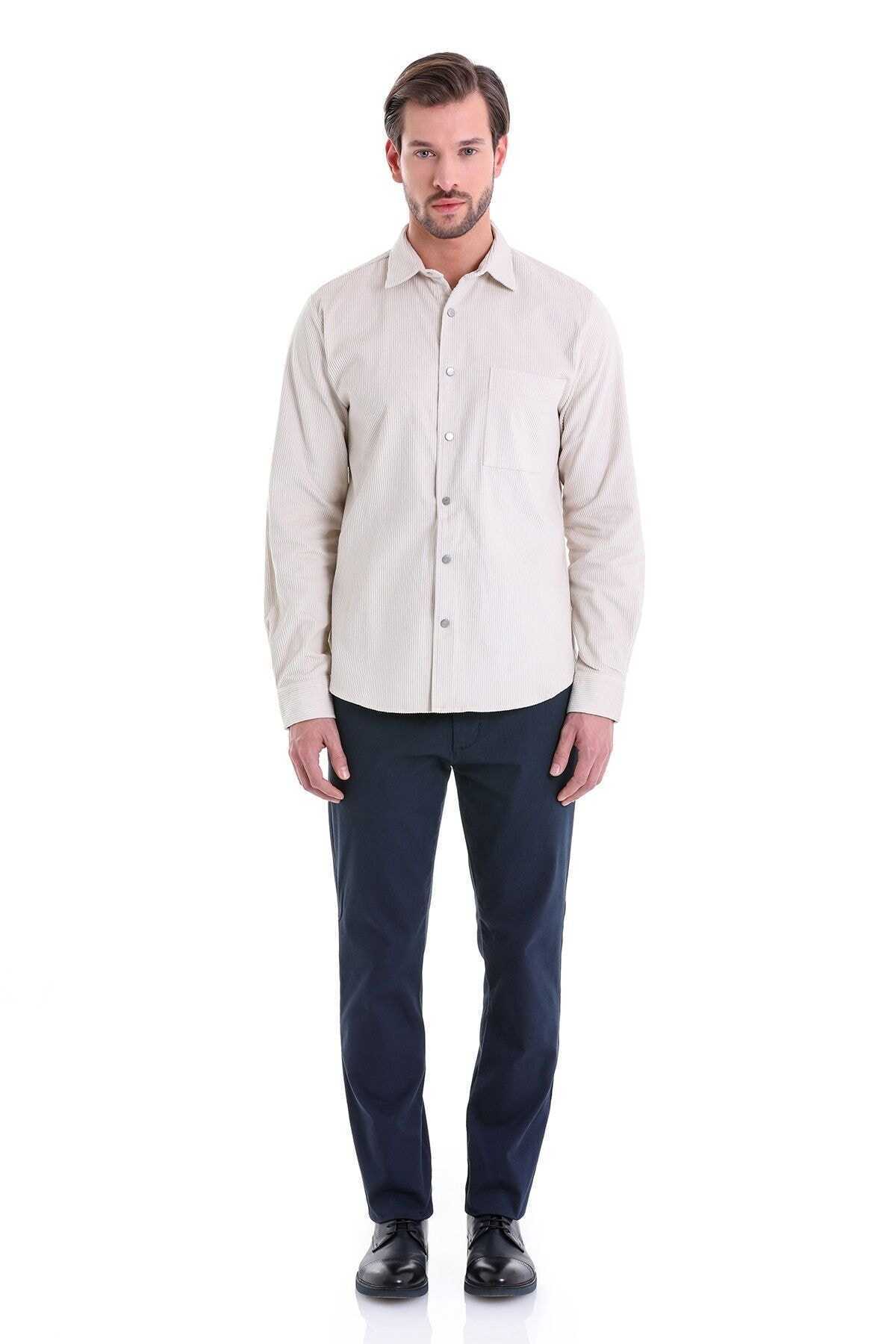 Taş Comfort Fit 100% Pamuk Slim Yaka Uzun Kollu Casual Kadife Gömlek