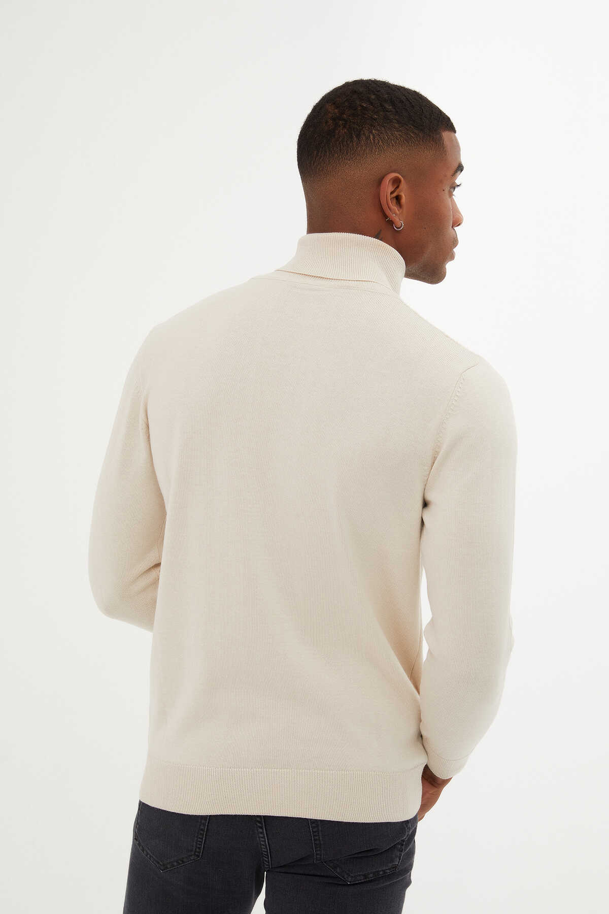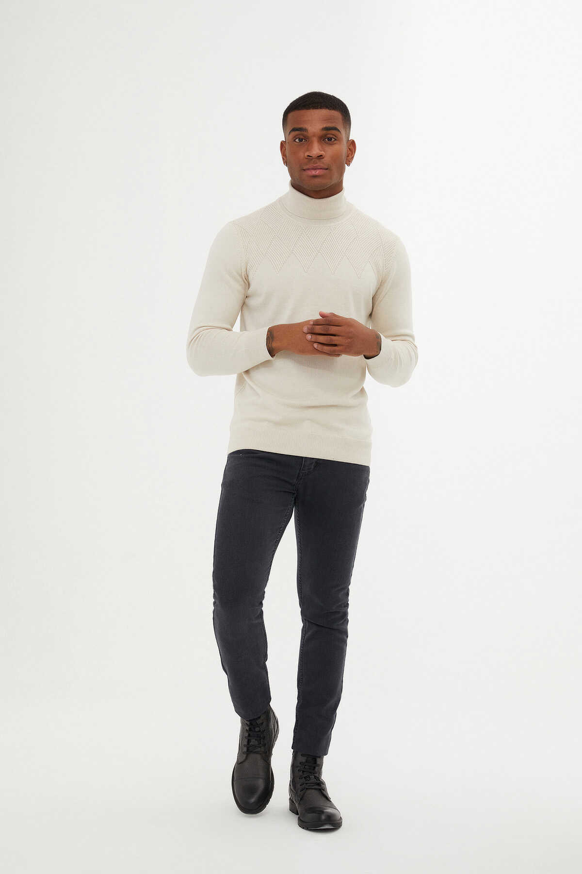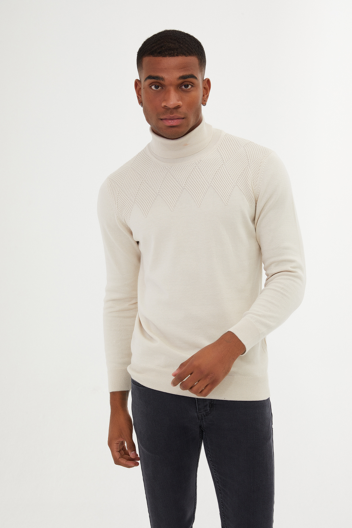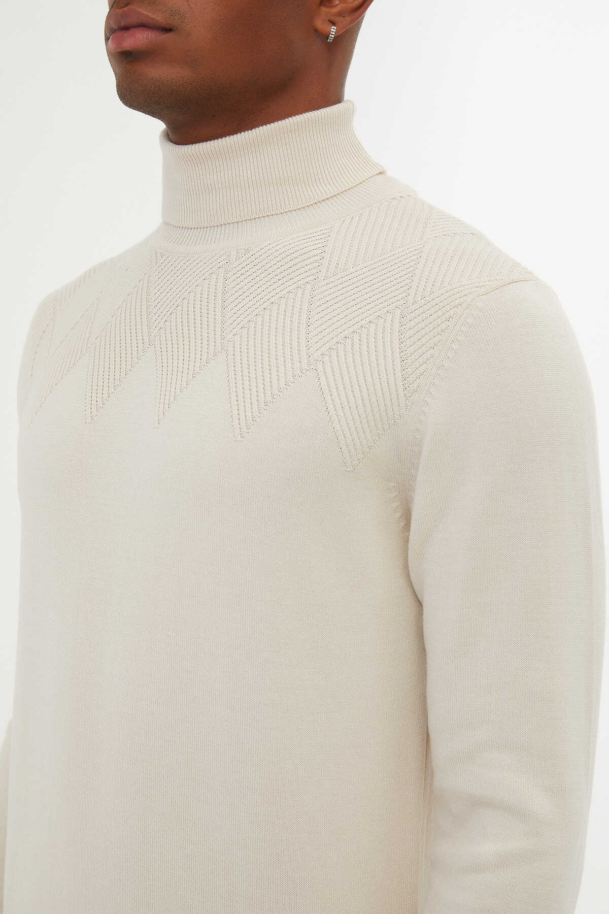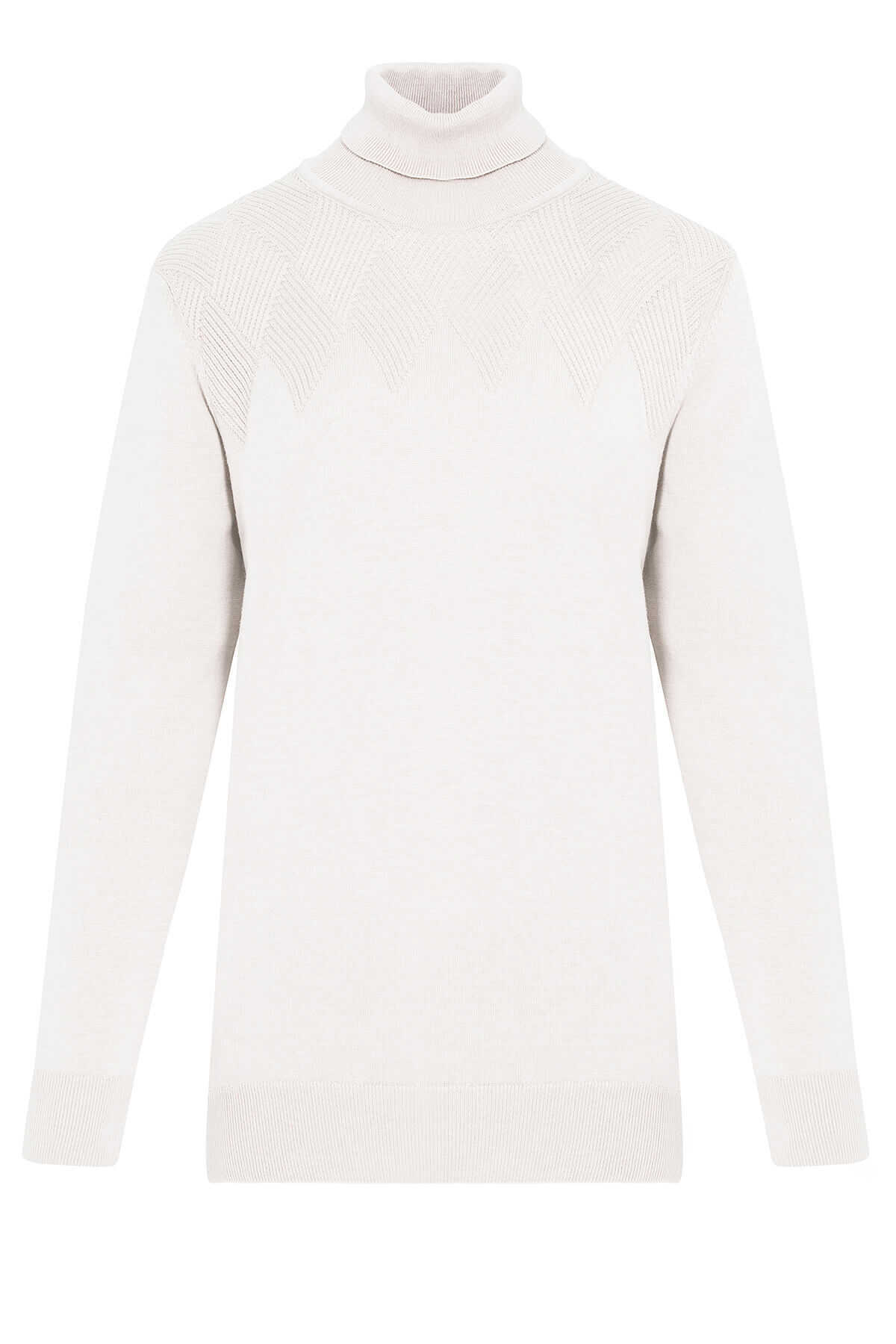 Taş Regular Fit Desenli Pamuklu Balıkçı Yaka Triko Kazak