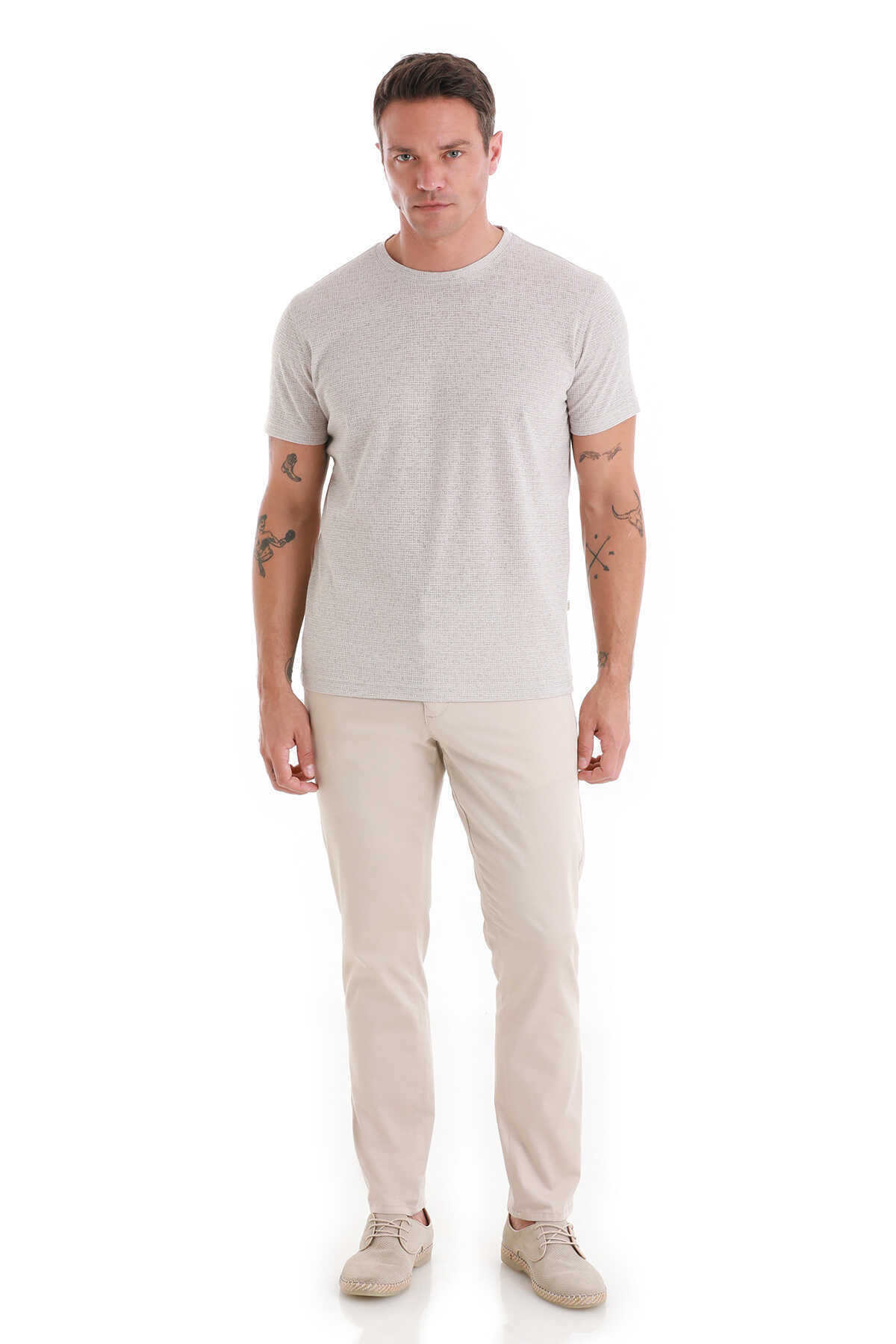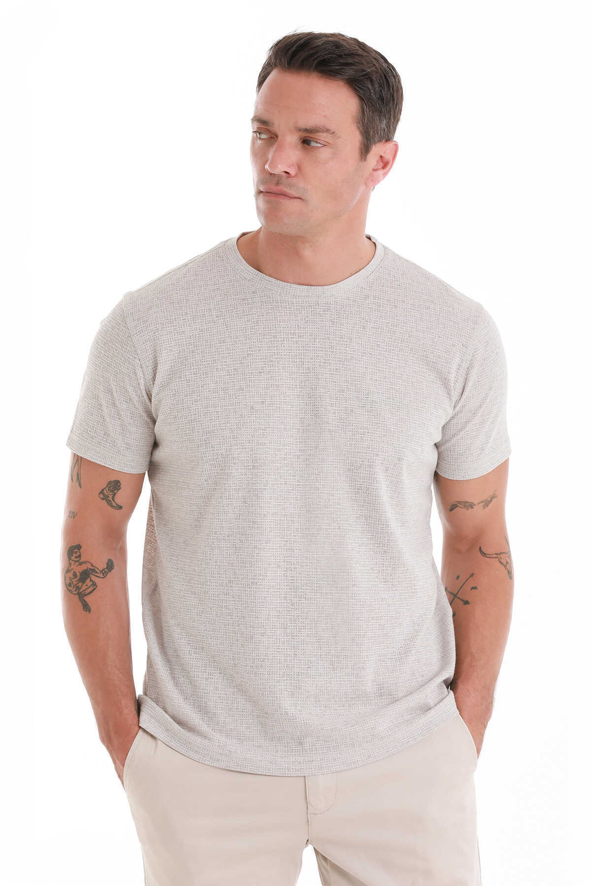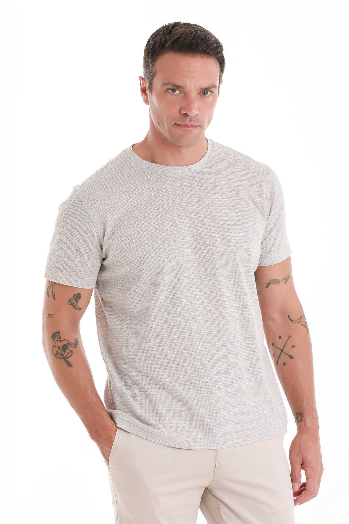 Taş Regular Fit Jakarlı Bisiklet Yaka Keten Tişört