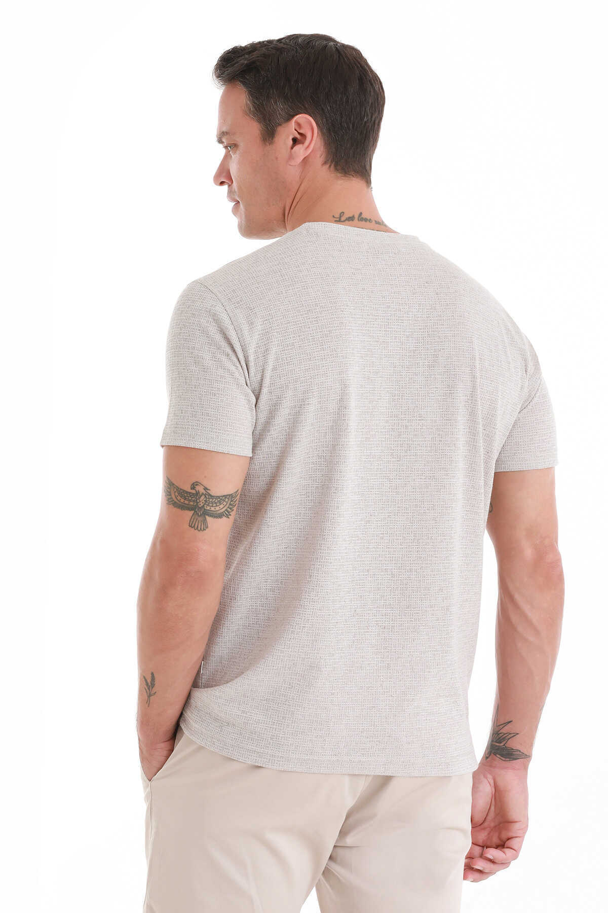 Taş Regular Fit Jakarlı Bisiklet Yaka Keten Tişört - 6