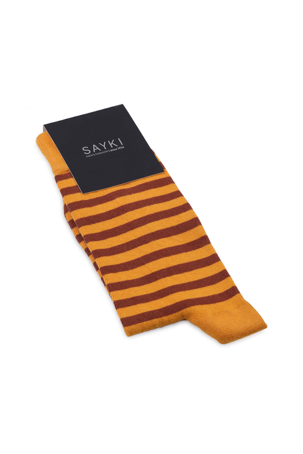 Turuncu Desenli Pamuklu Soket Çorap - 1