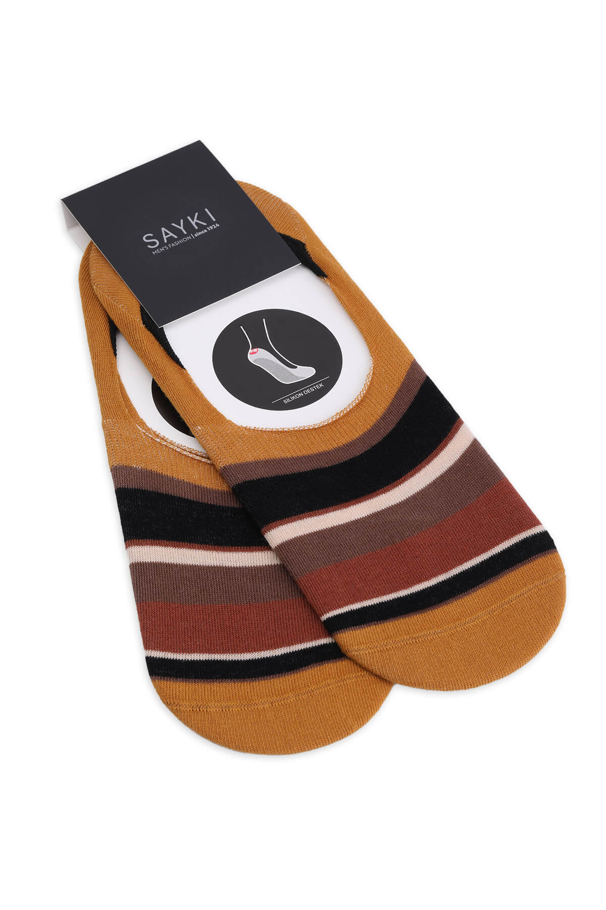 Turuncu İkili Çizgili Pamuklu Babet Çorap