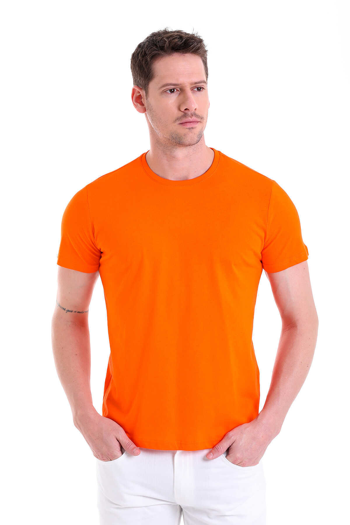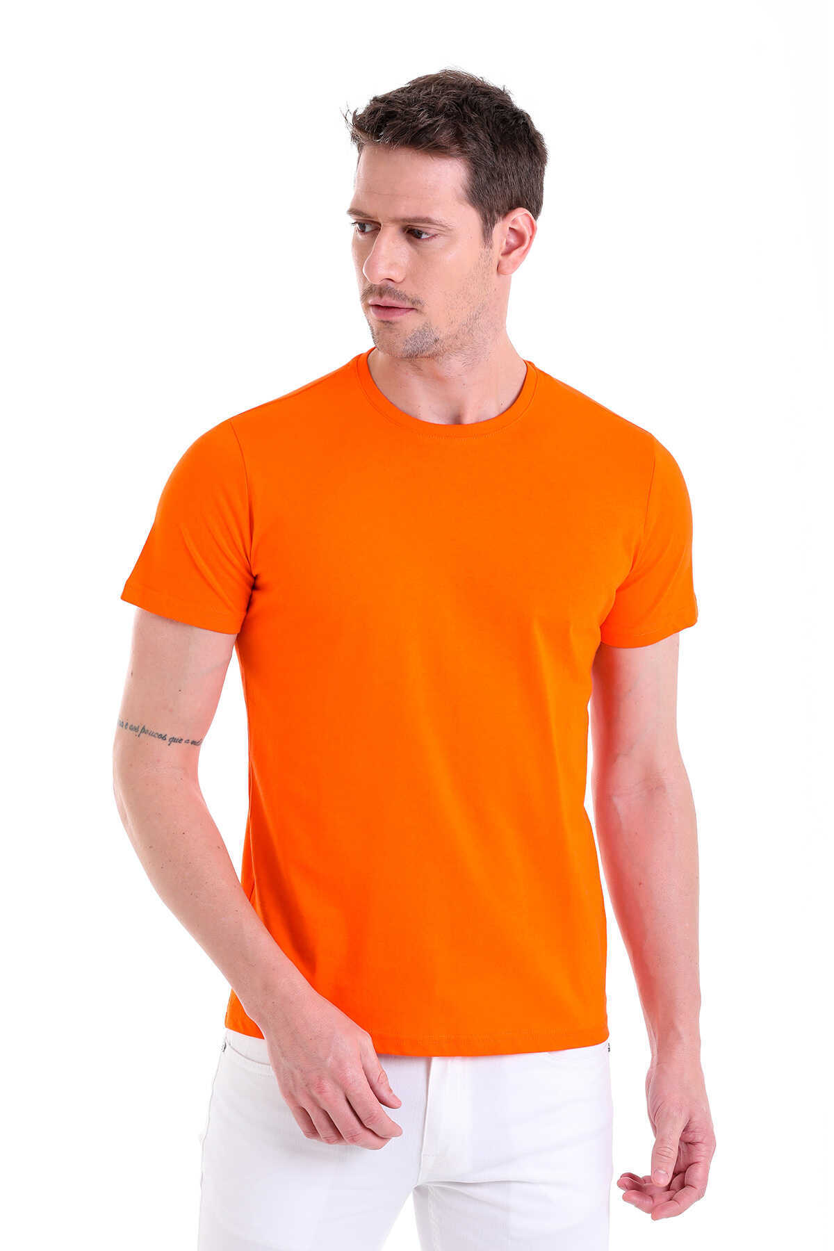Turuncu Regular Fit Baskılı Bisiklet Yaka 100% Pamuk Tişört