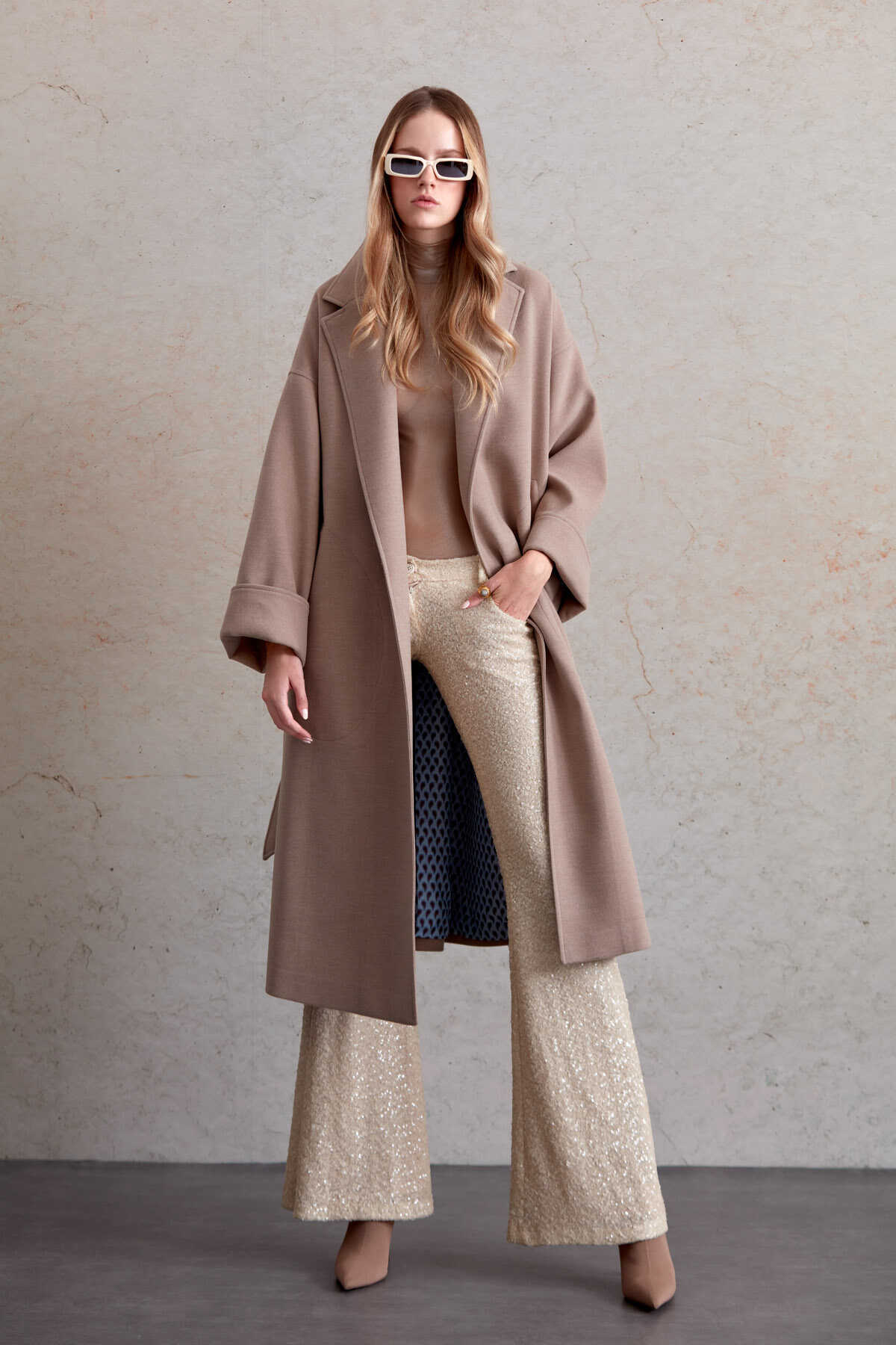 Saykı Woman Vizon Oversize Cep Detaylı Kemerli Manto