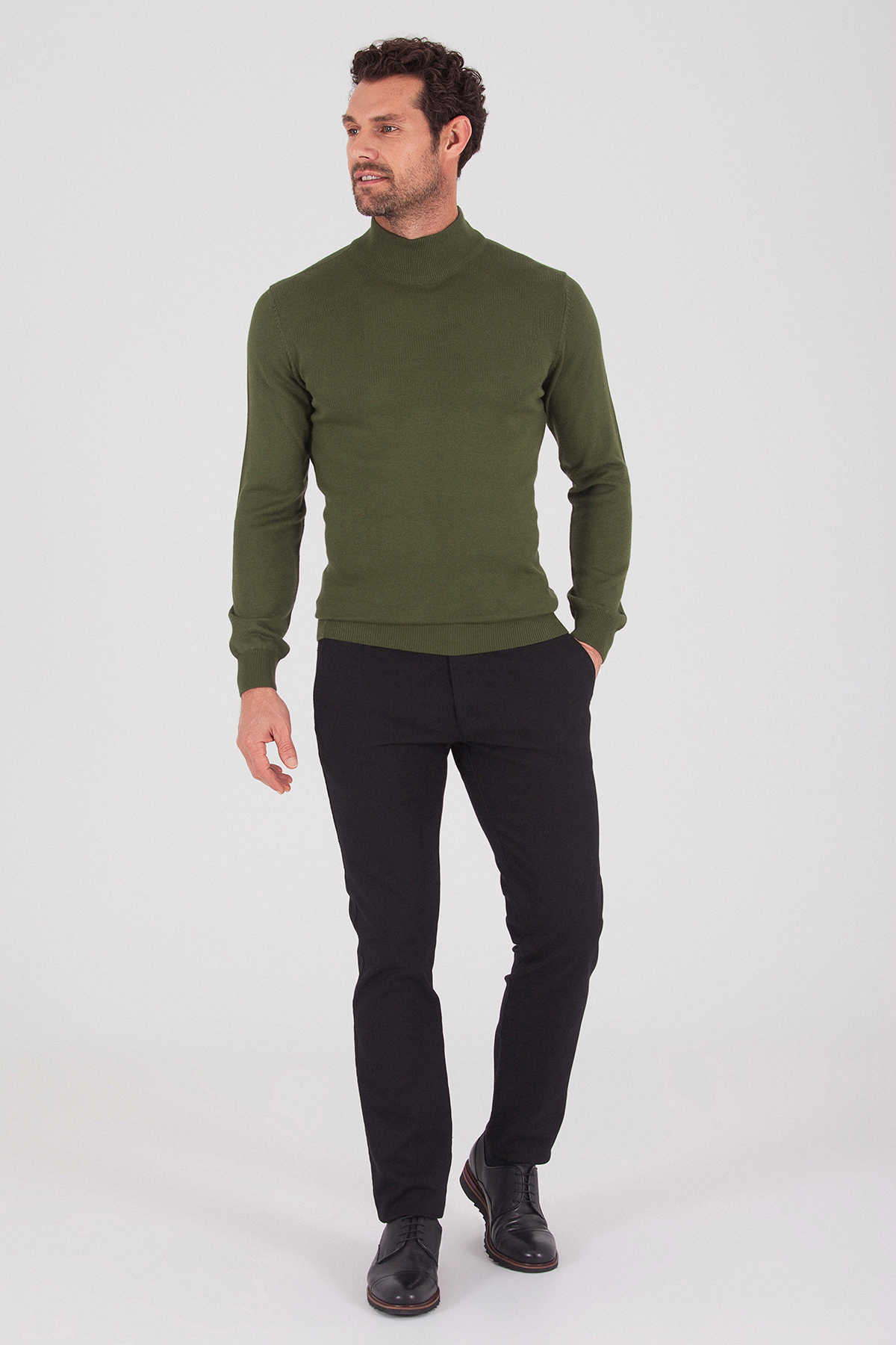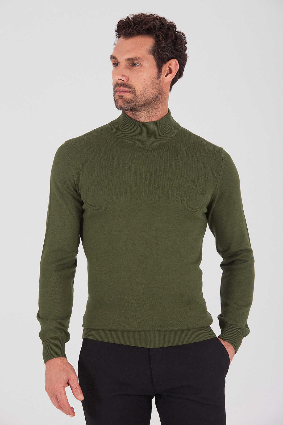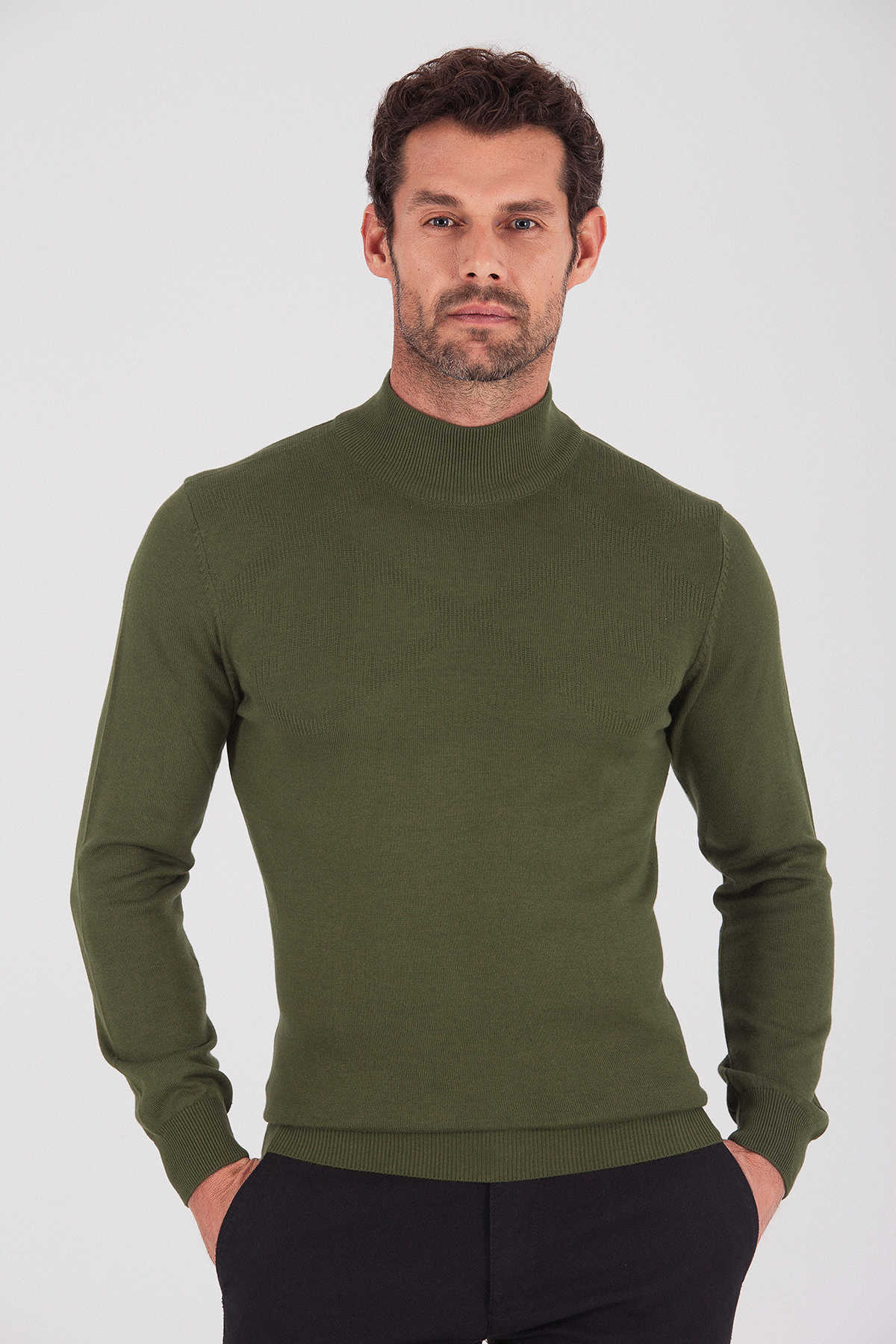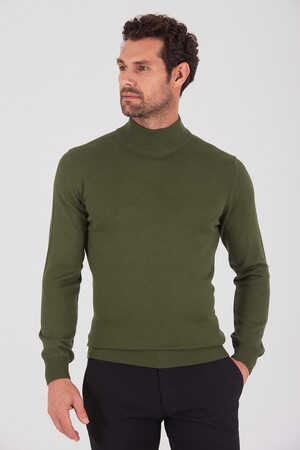 Yarım Balıkçı Yaka Yeşil Triko Kazak