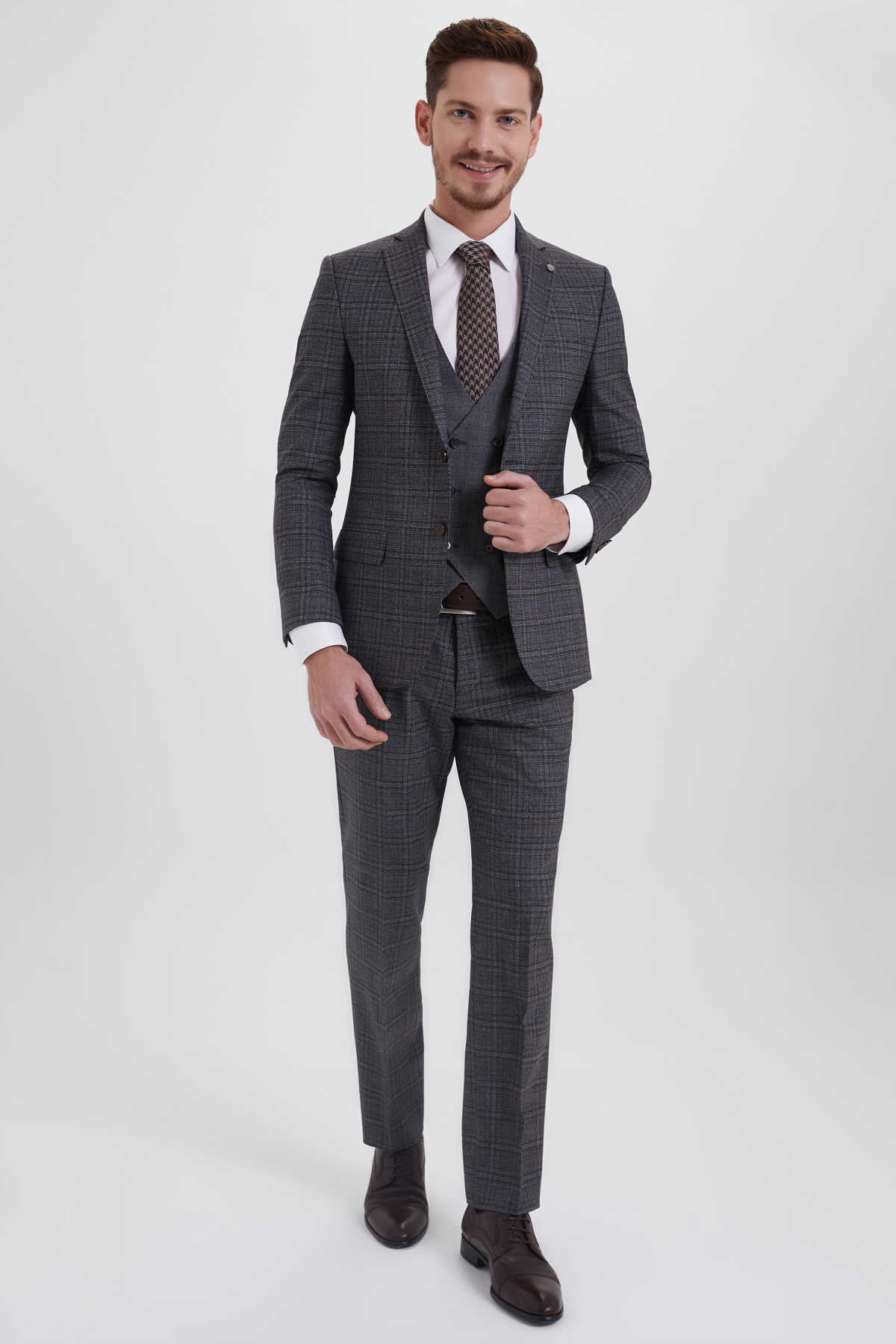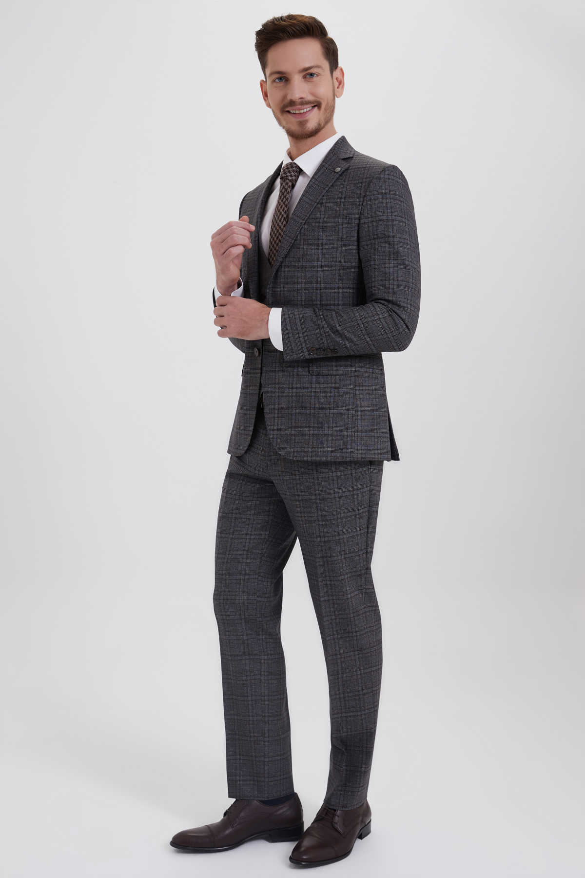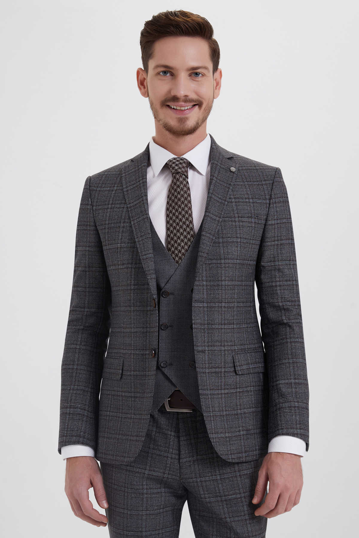 Ceket ve Pantolon Kareli Yelek Düz kumaştandır