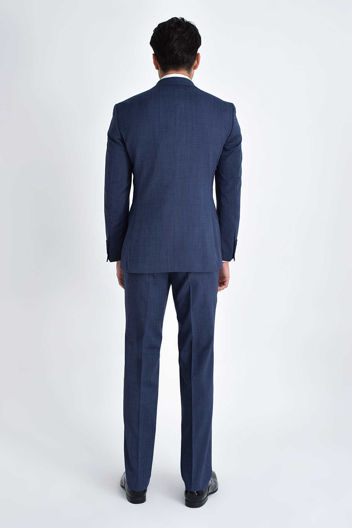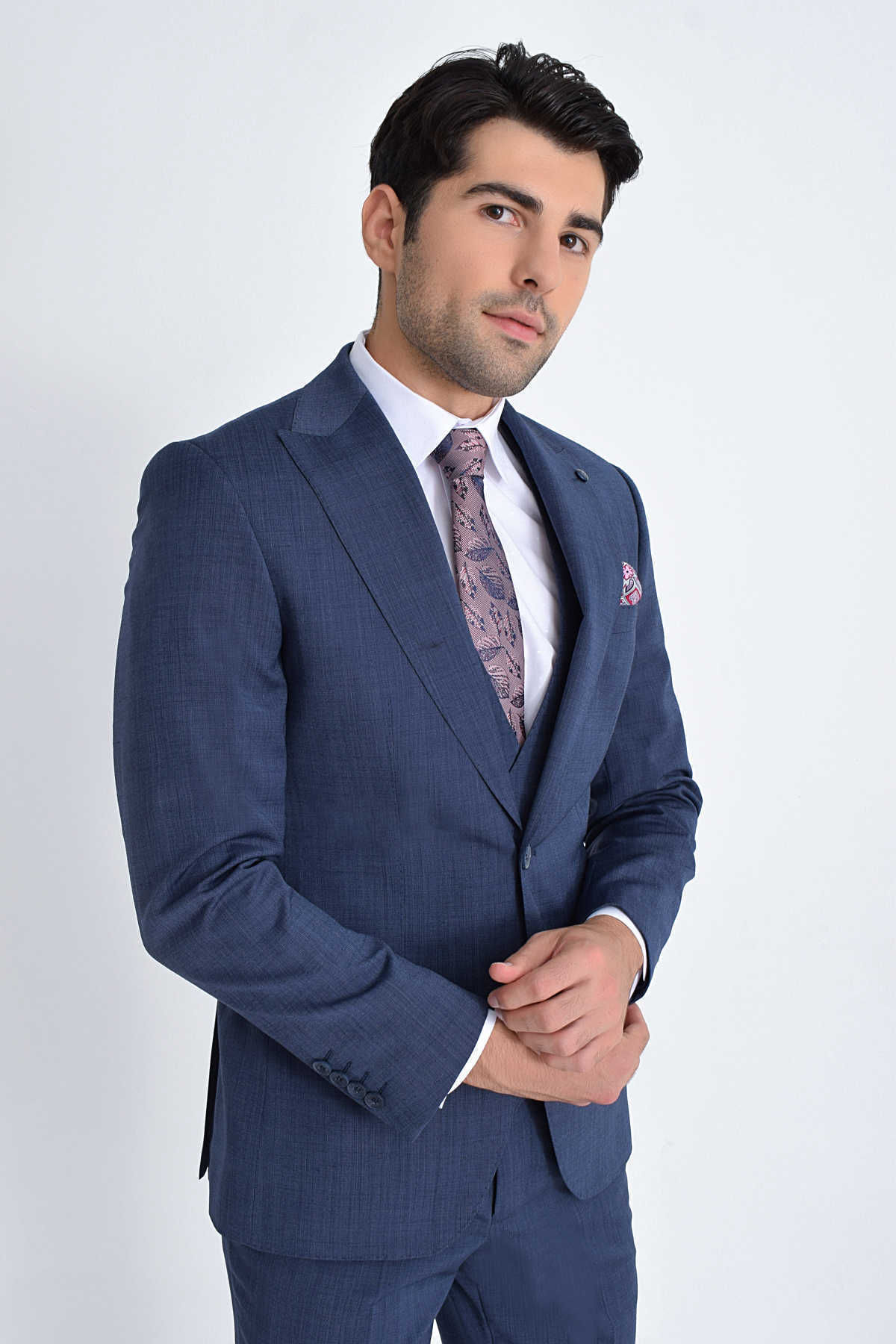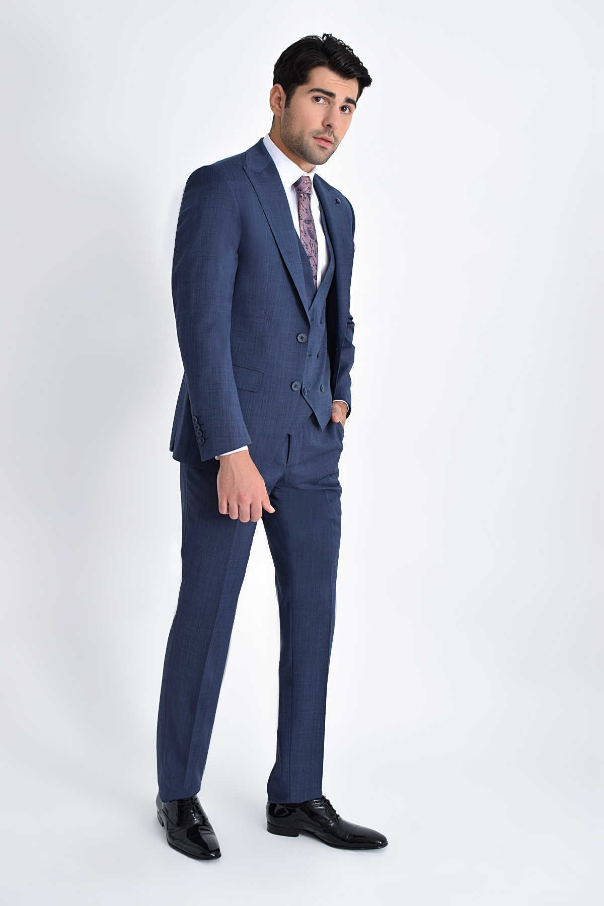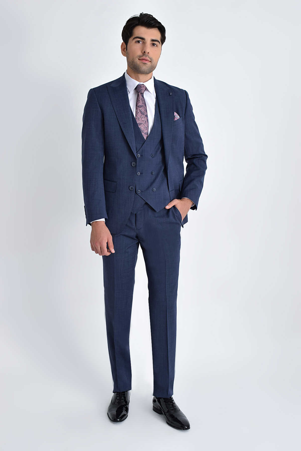 Lacivert Desenli Slim Fit Yelekli Takım Elbise