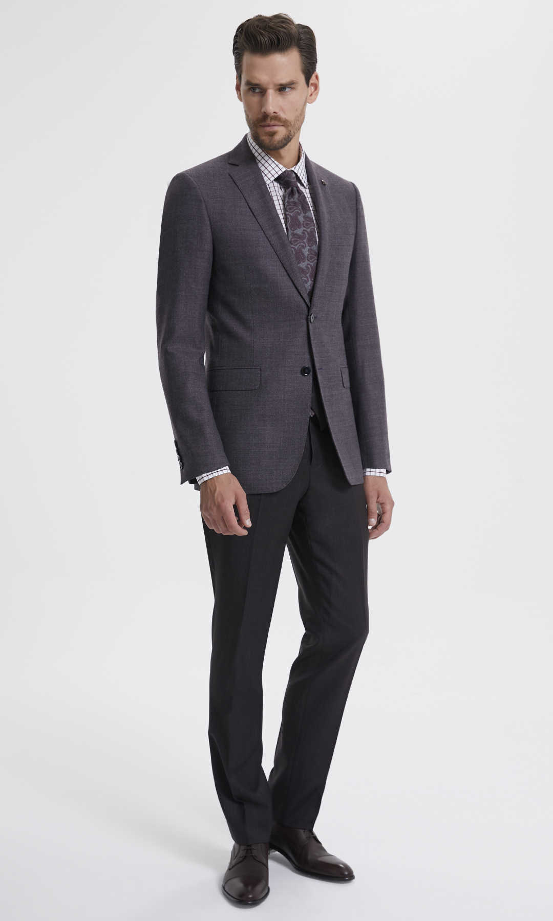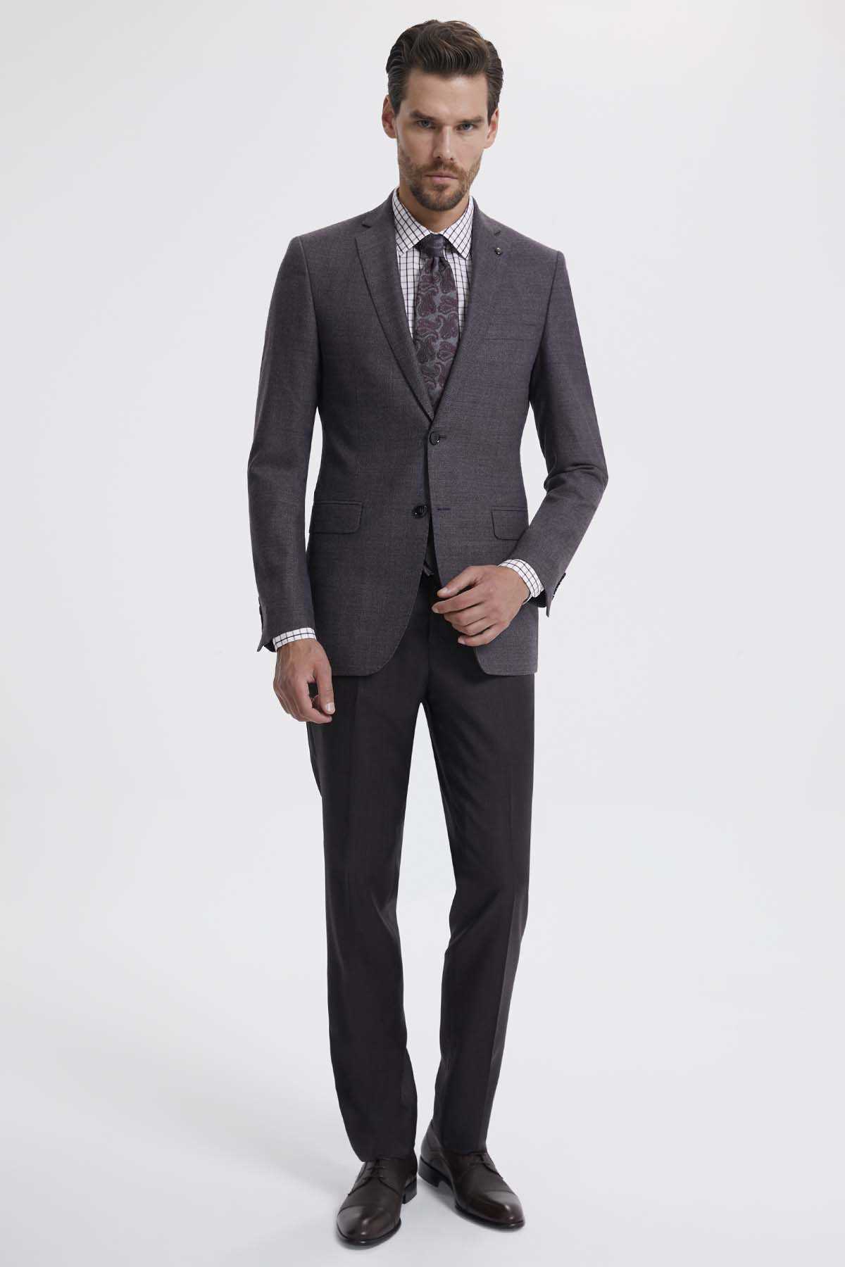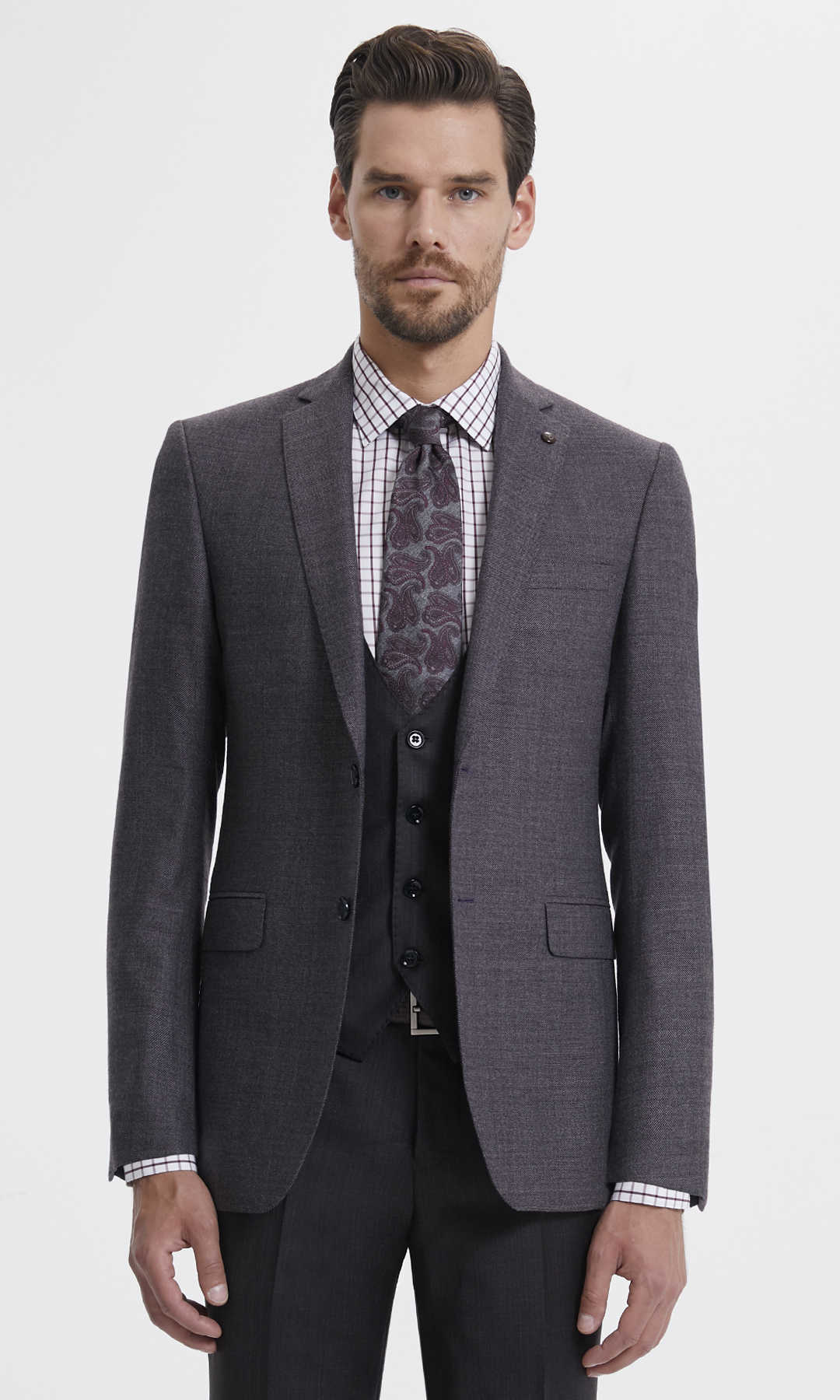 Yelekli Slim Fit Mürdüm Takım Elbise