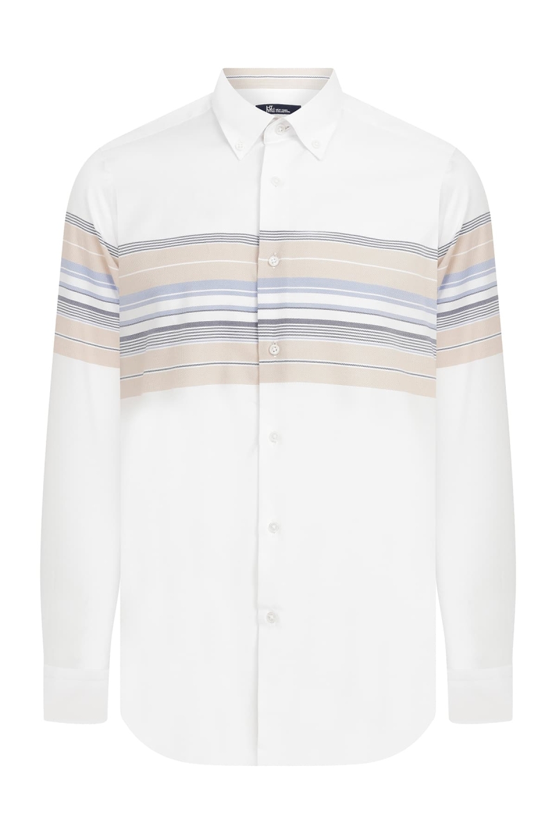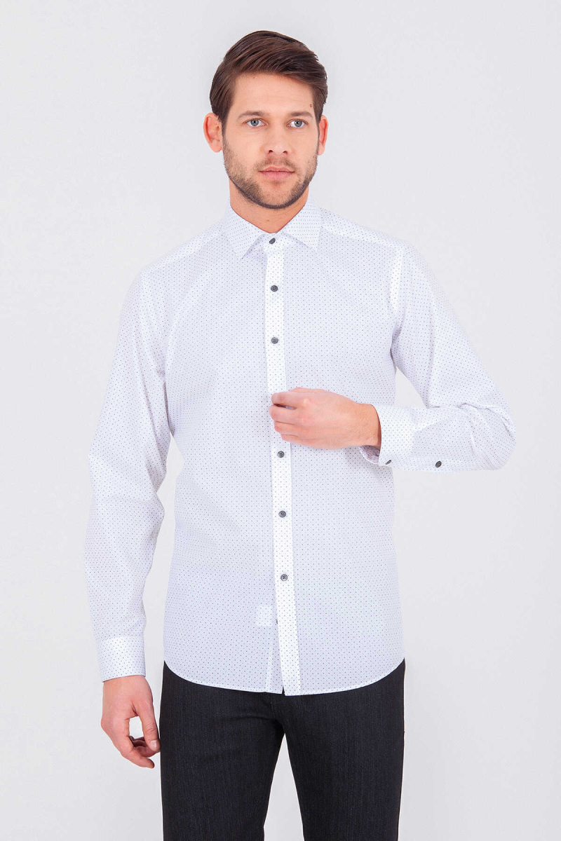 Beyaz Slim Fit 100% Pamuk Slim Yaka Pamuklu Uzun Kollu Gömlek