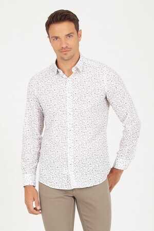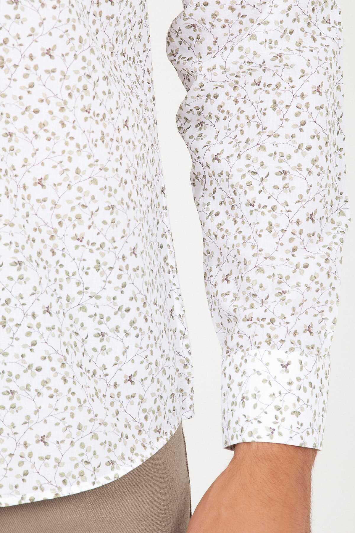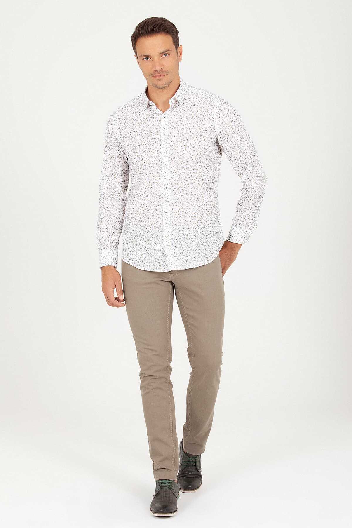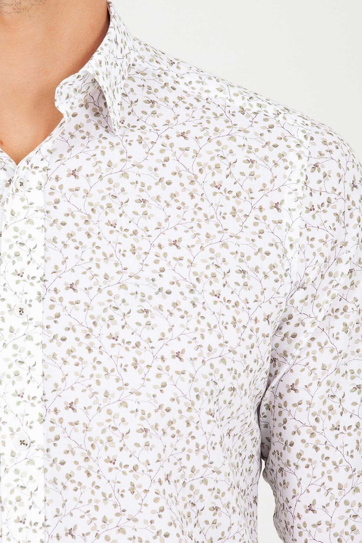 Yeşil Slim Fit Baskılı 100% Pamuk Uzun Kol Spor Gömlek