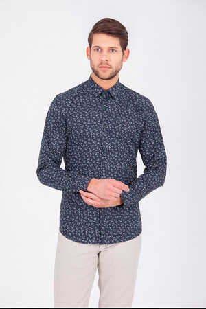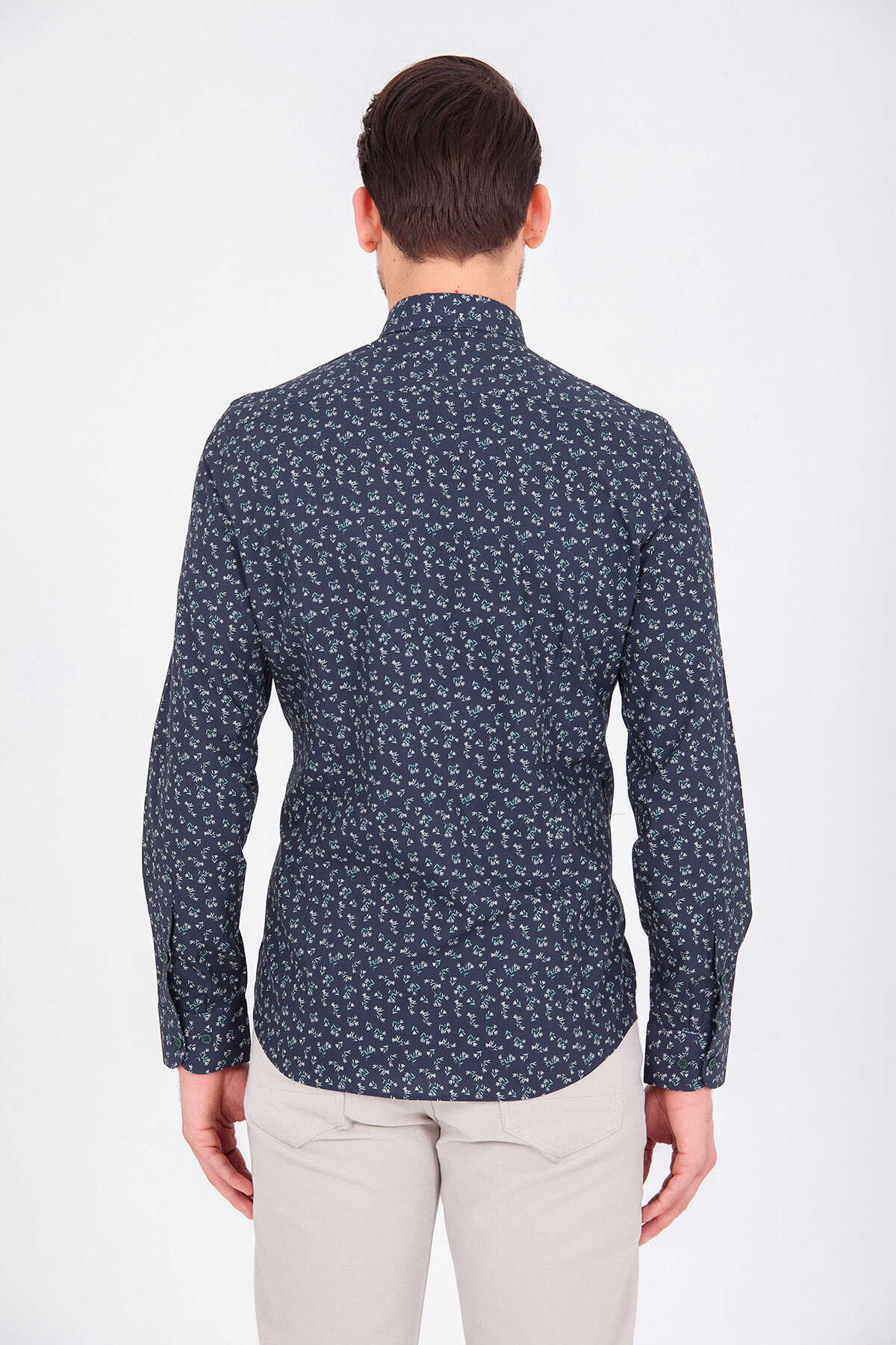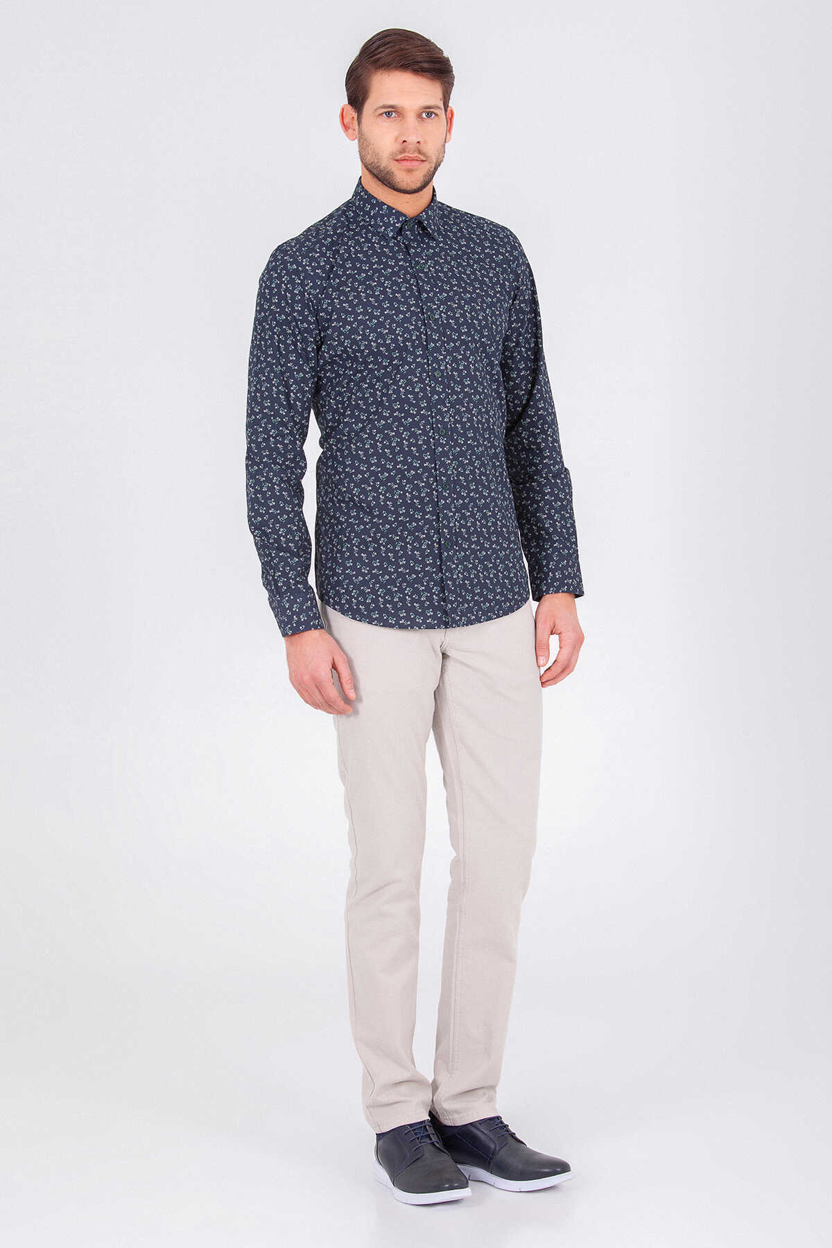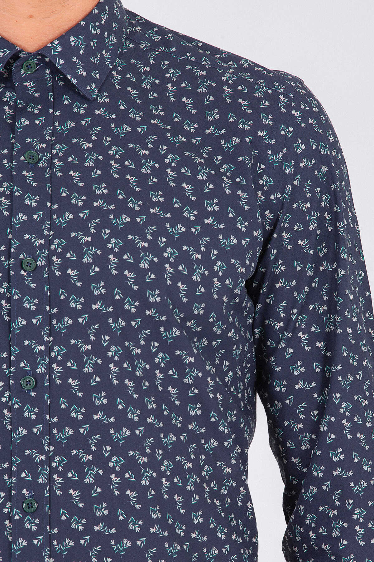 Yeşil Slim Fit Baskılı 100% Pamuk Uzun Kol Spor Gömlek