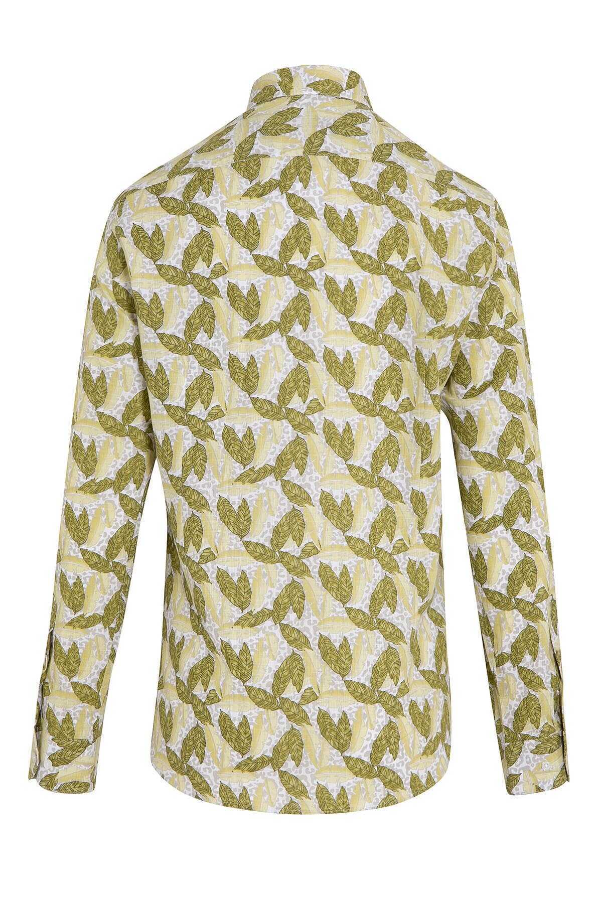 Yeşil Slim Fit Baskılı 100% Pamuk Düğmeli Yaka Uzun Kollu Casual Gömlek