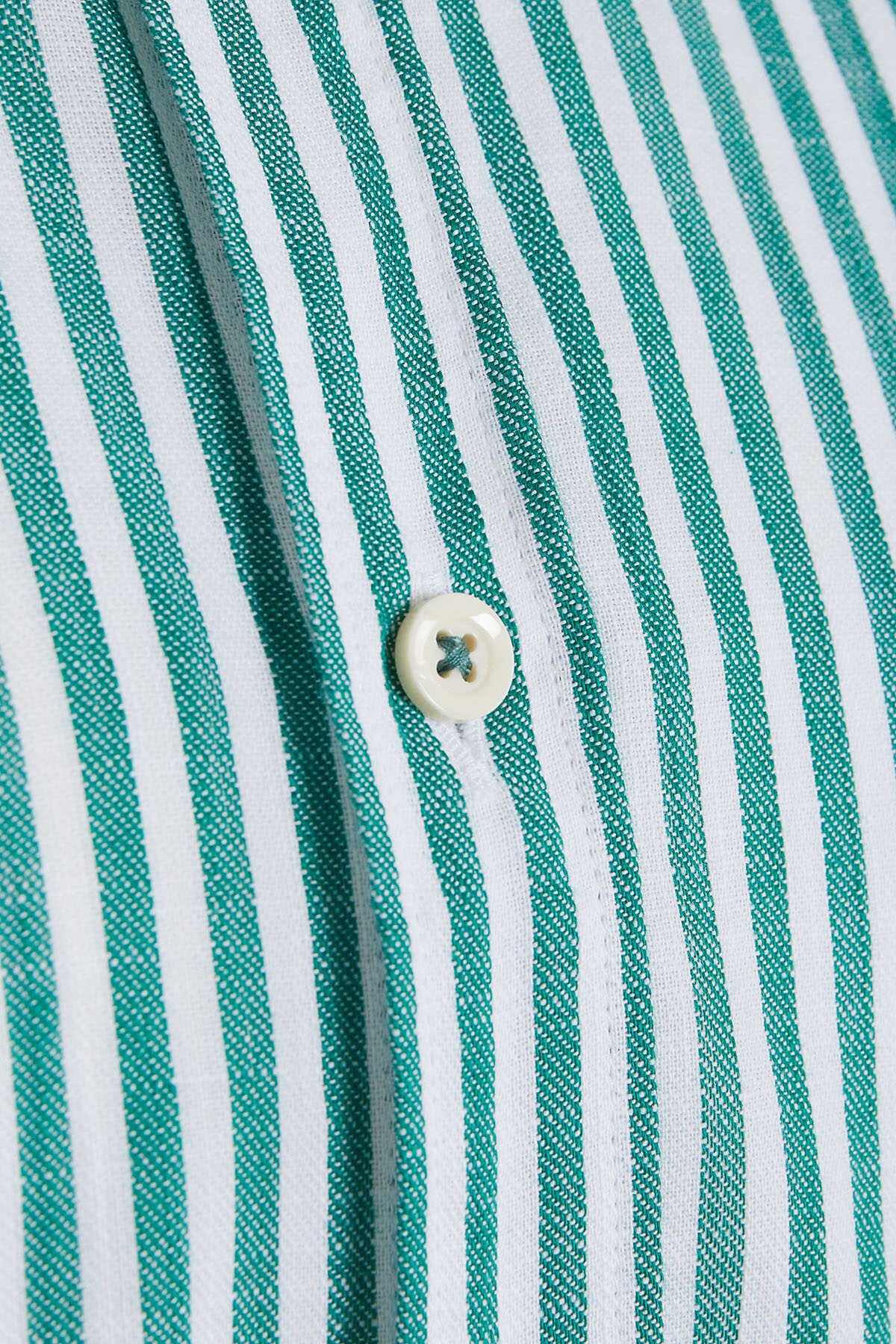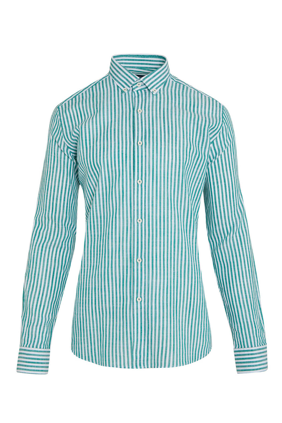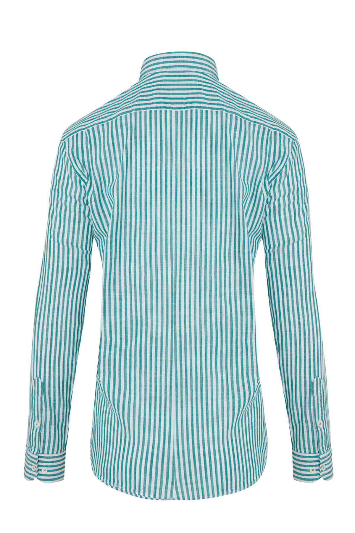 Yeşil Slim Fit Çizgili 100% Pamuk Uzun Kol Gömlek
