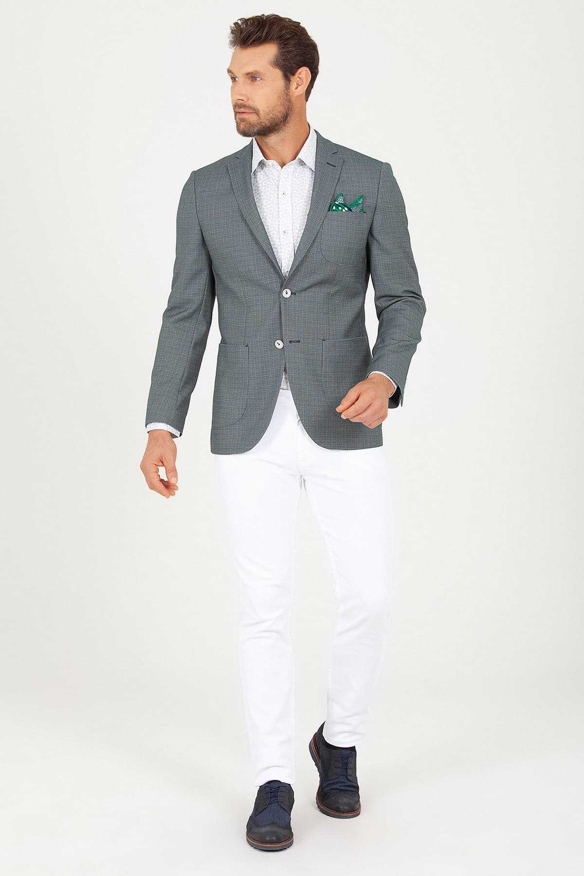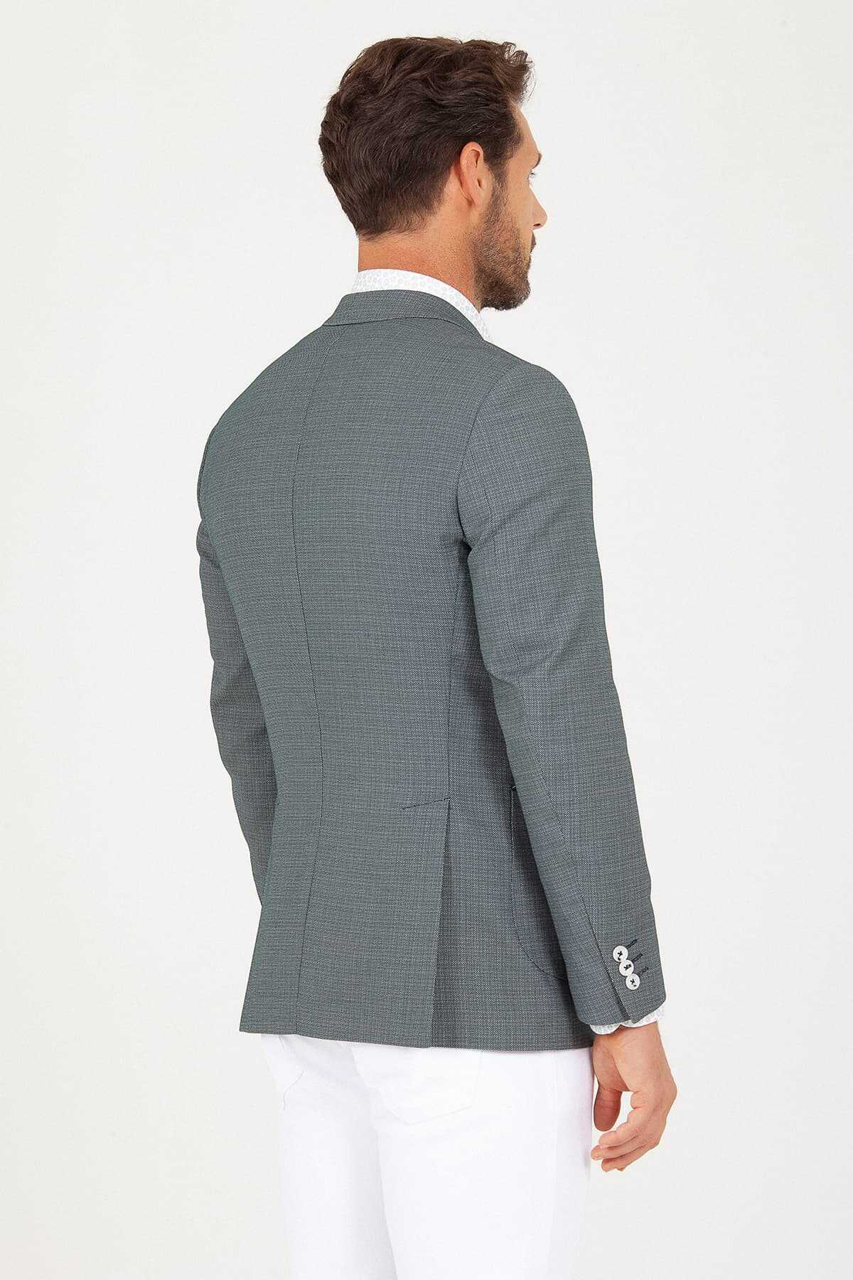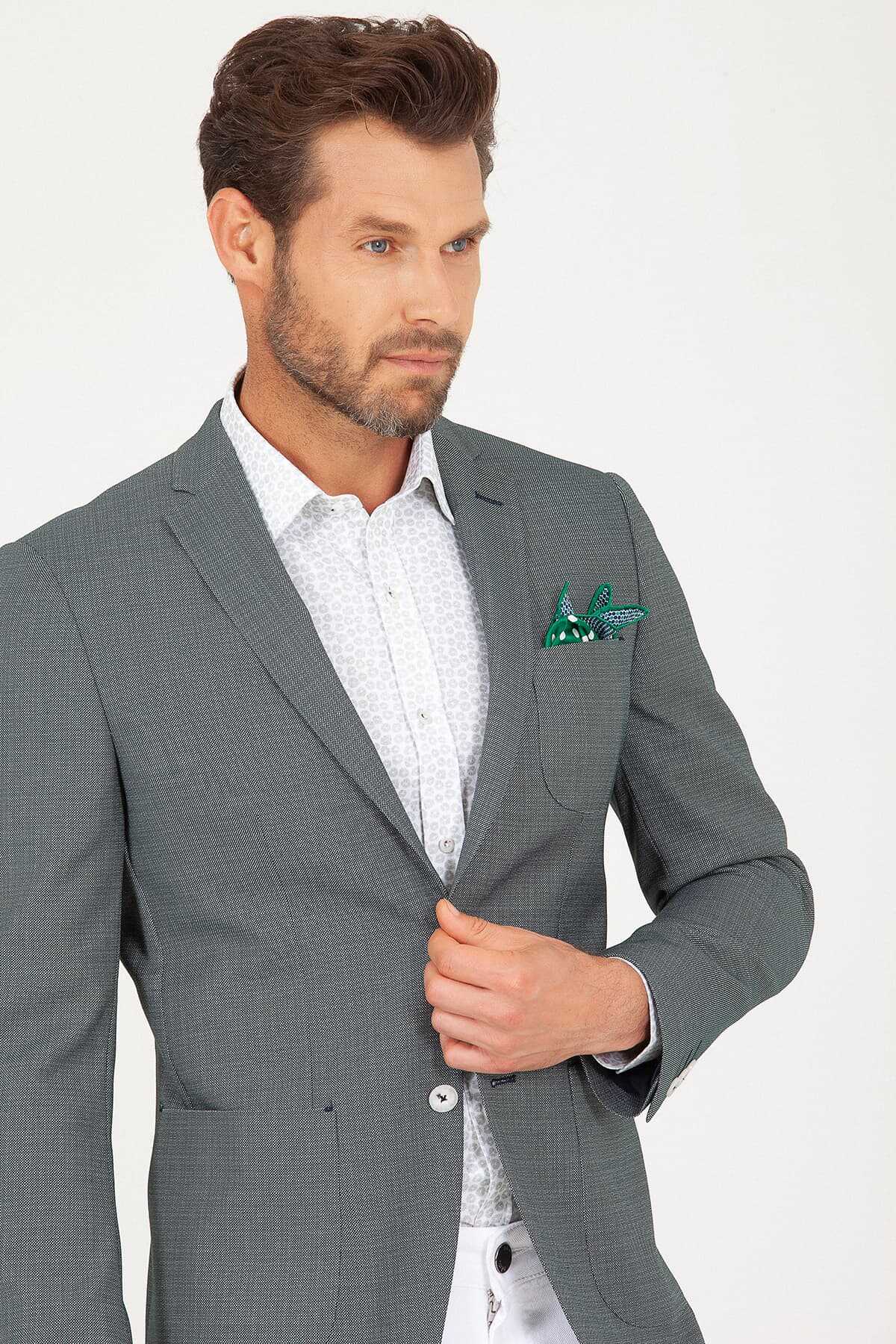 Yeşil Slim Fit Desenli Ceket