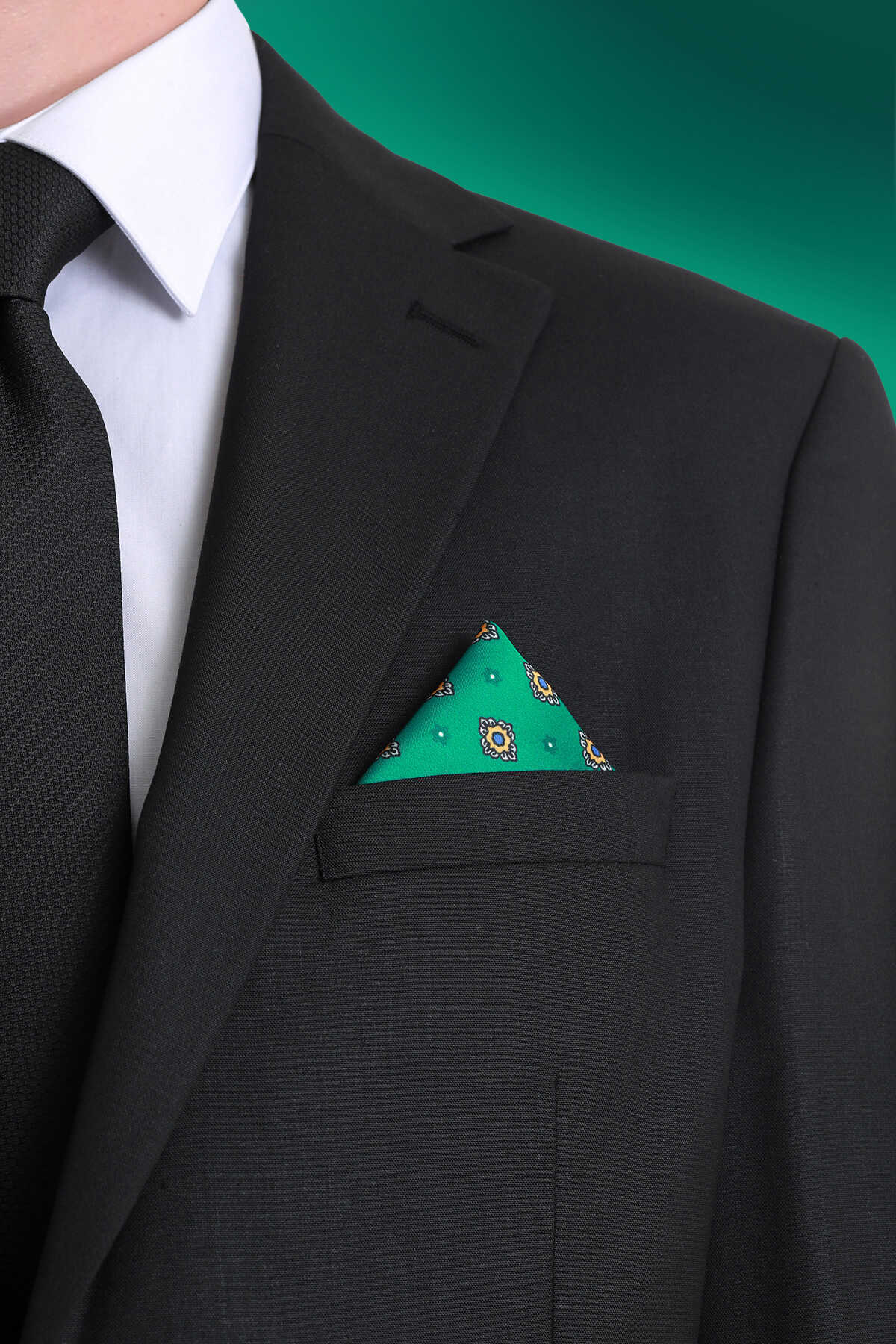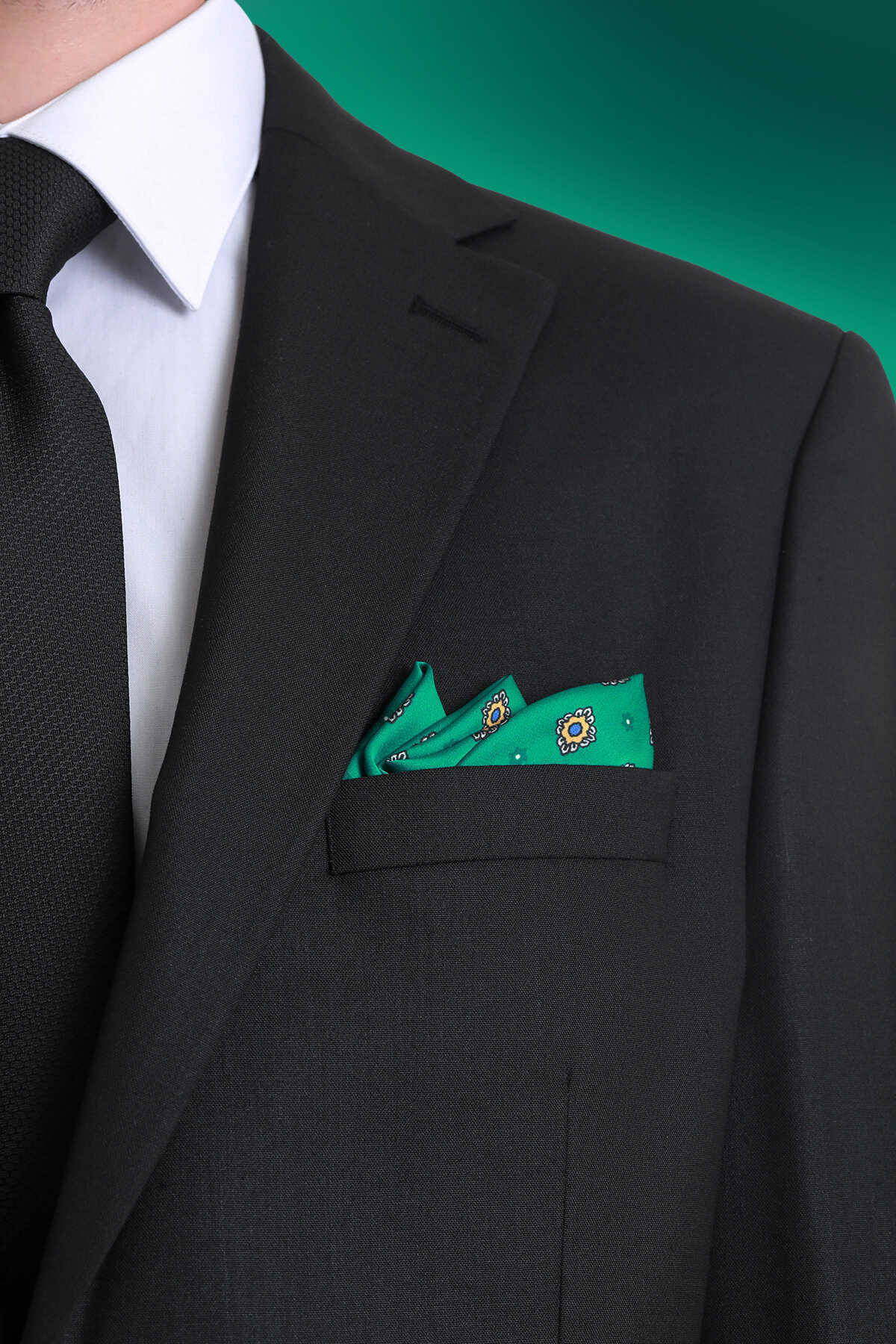 Yeşil Desenli Klasik Saten Cep Mendili - 3
