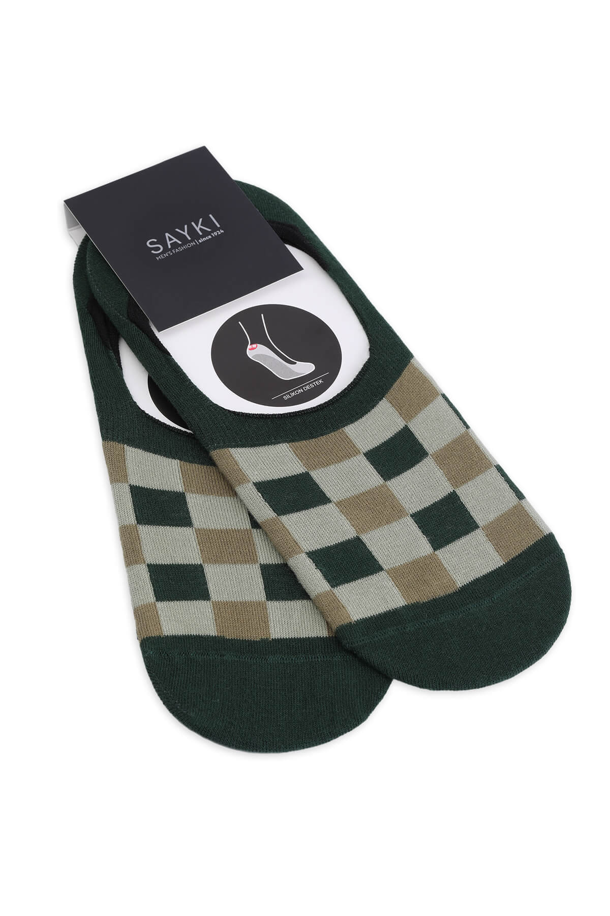 Yeşil İkili Pamuklu Kareli Babet Çorap