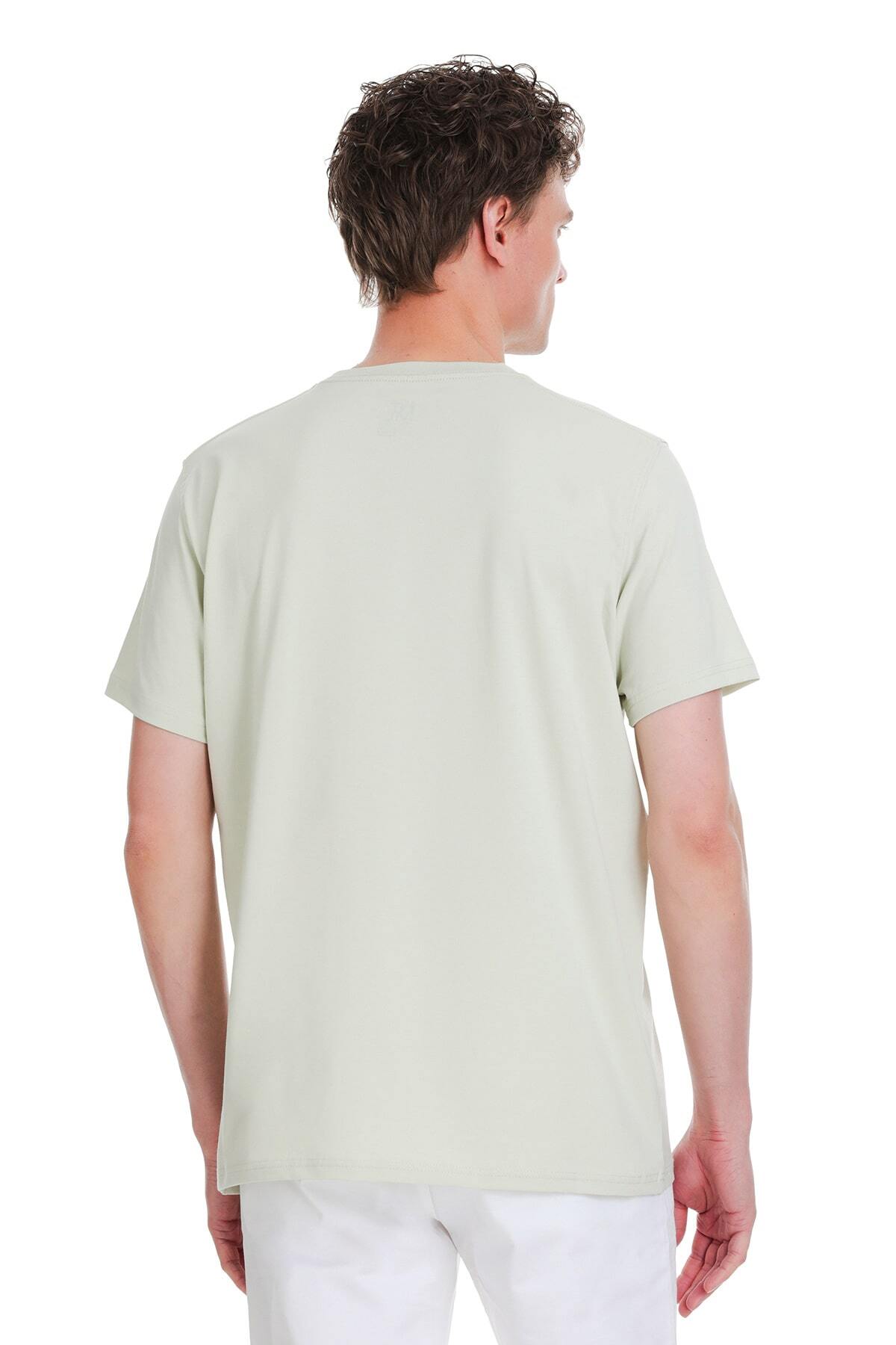 Yeşil Regular Fit Bisiklet Yaka Pamuklu Tişört - 5