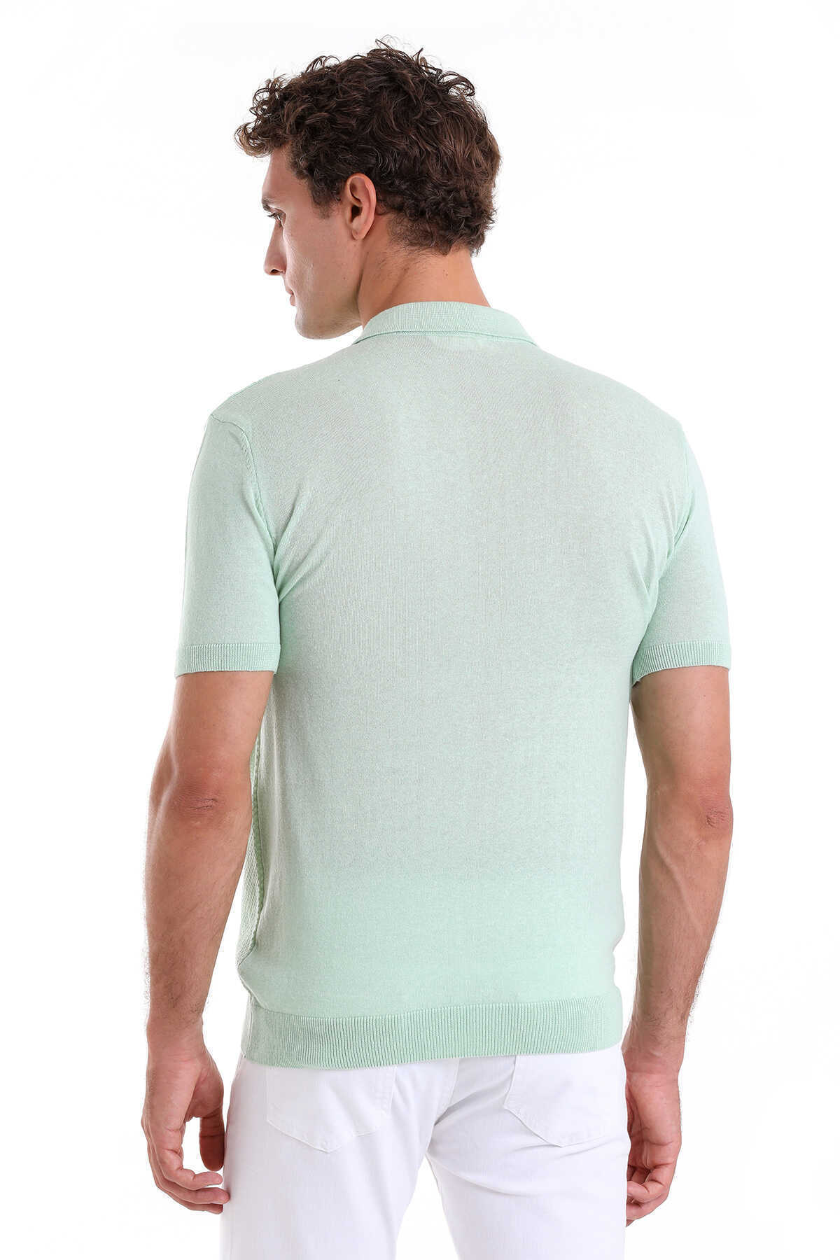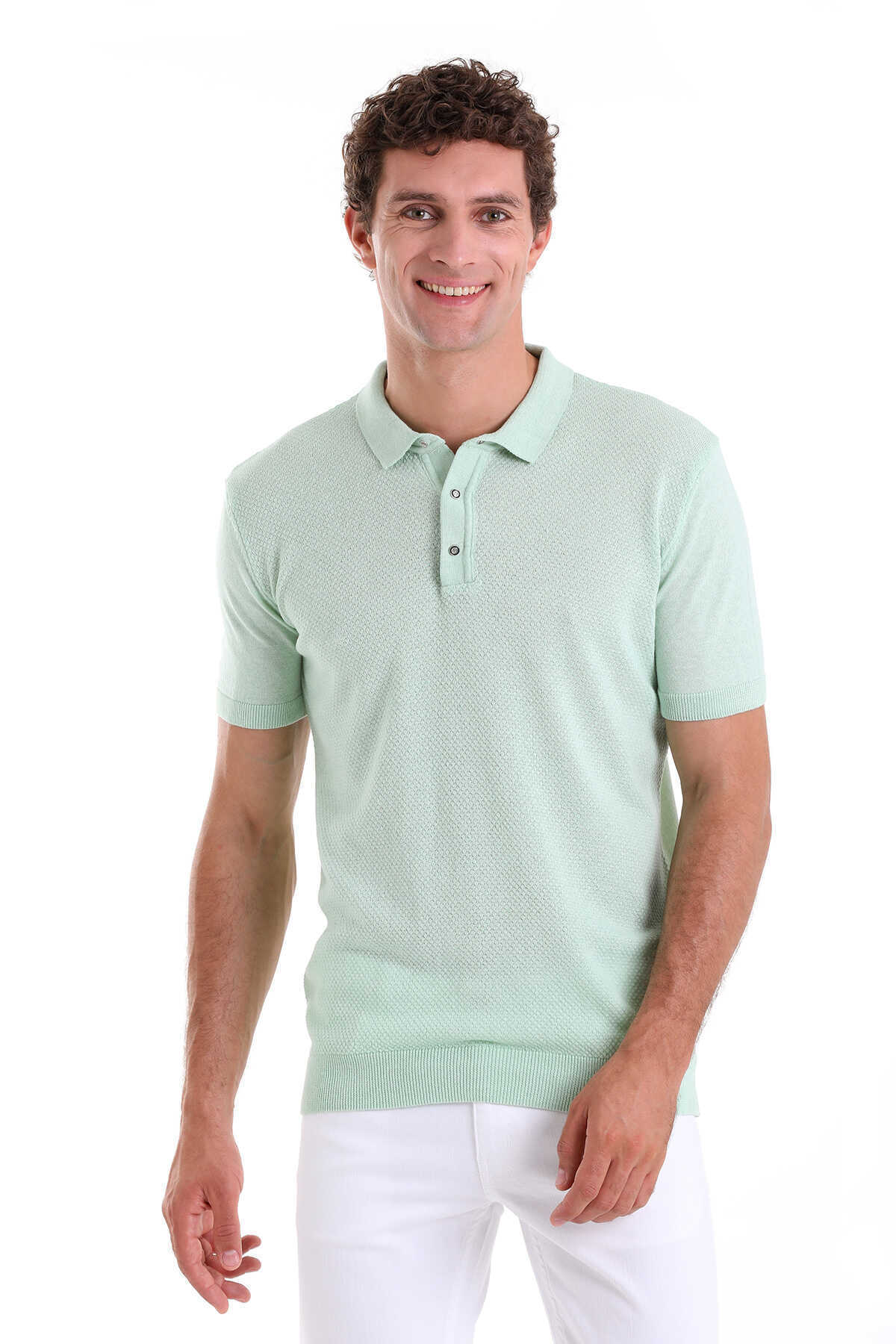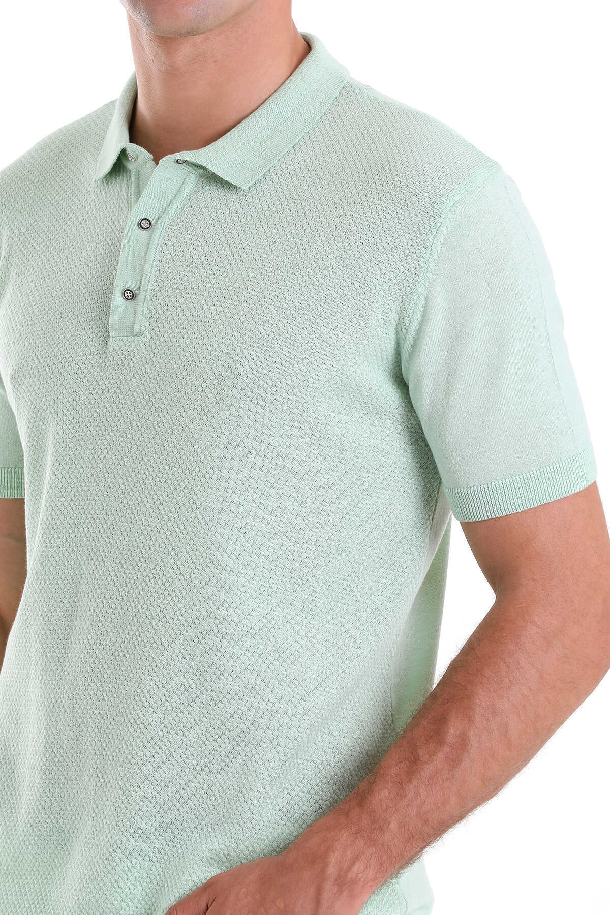 Yeşil Regular Fit jakarlı Pamuklu Polo Yaka Tişört - 6