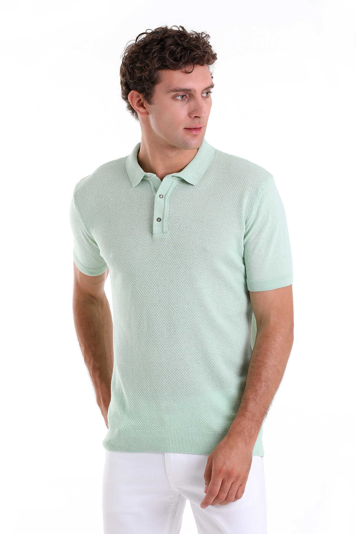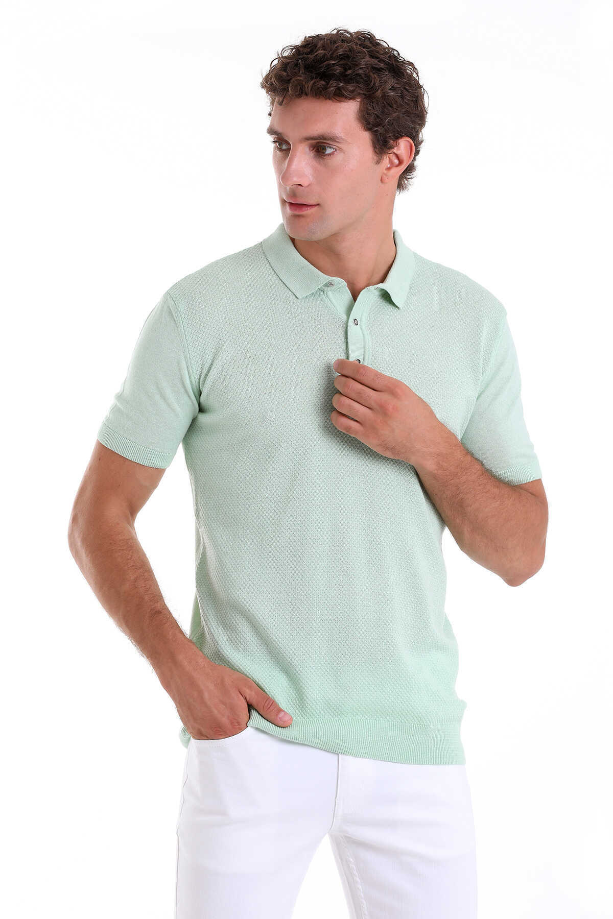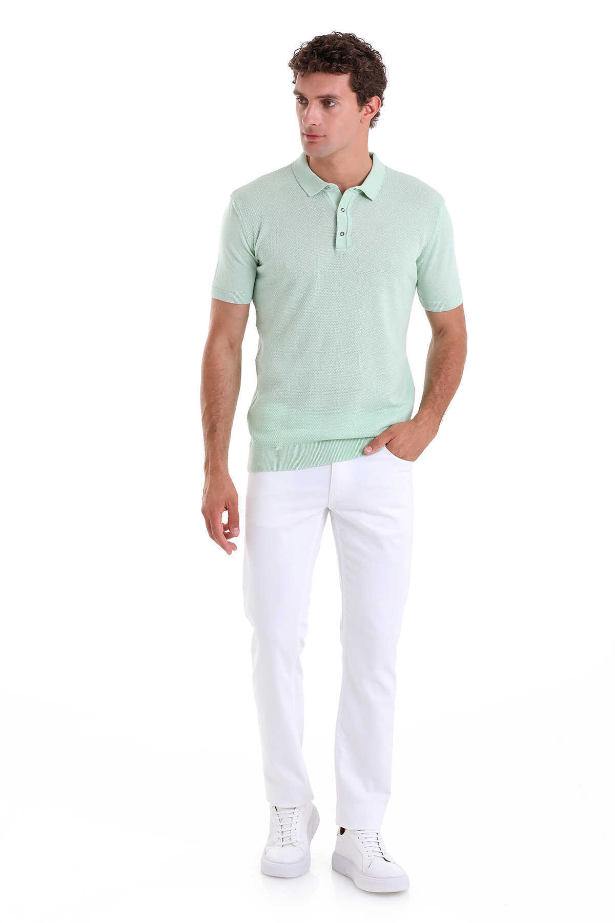 Yeşil Regular Fit jakarlı Pamuklu Polo Yaka Tişört - 6